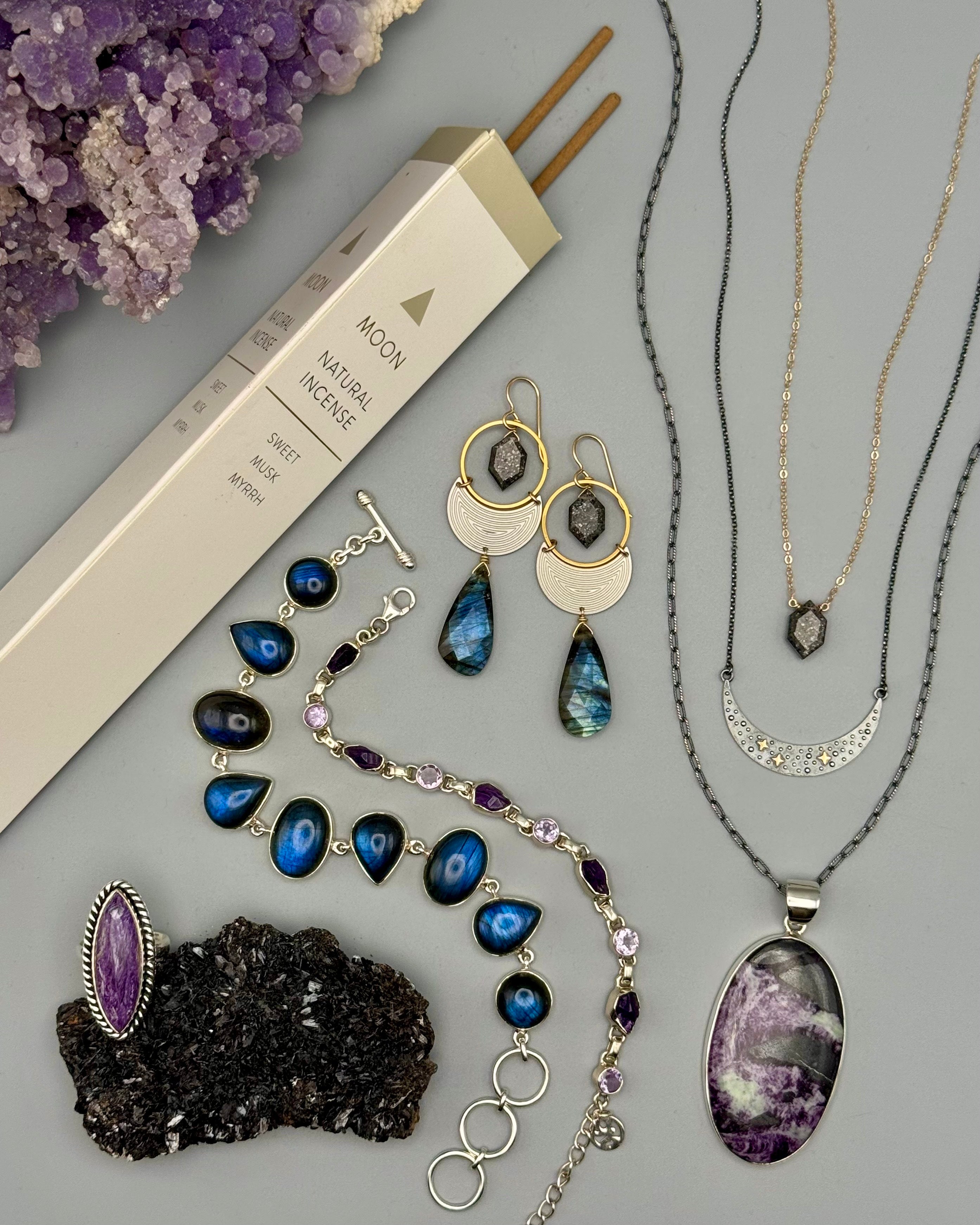 •STRAY• faceted rainbow moonstone lil' hex + silver necklace (various lengths)