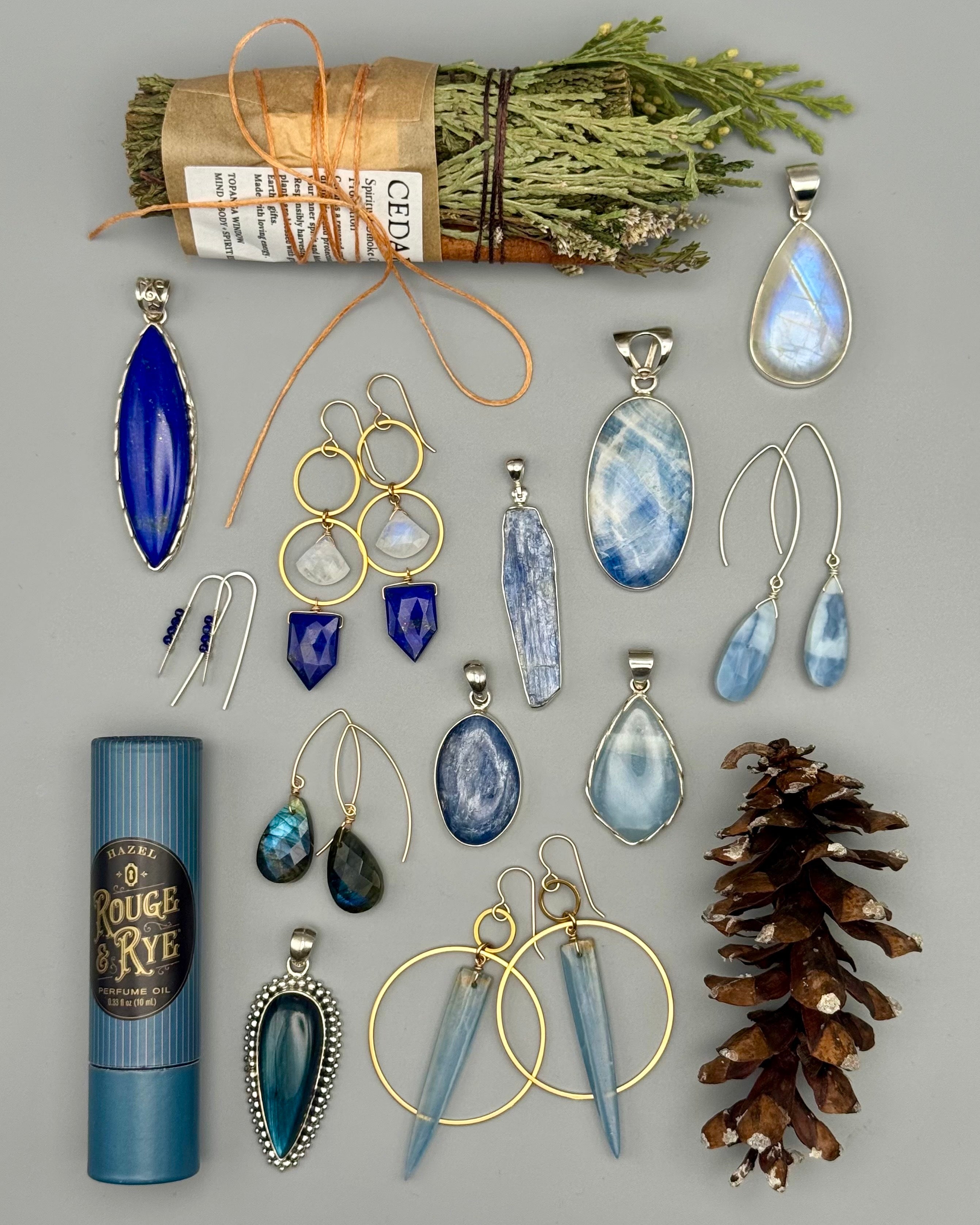 •EQUA-LUNA• labradorite + rainbow moonstone gold earrings
