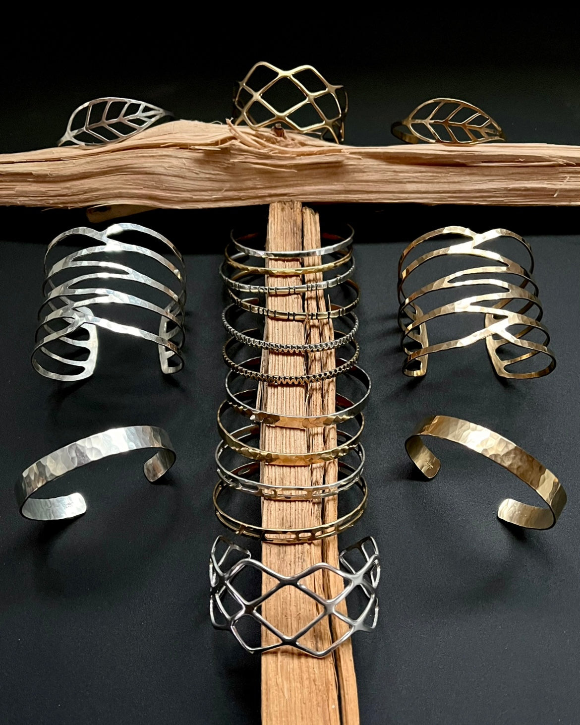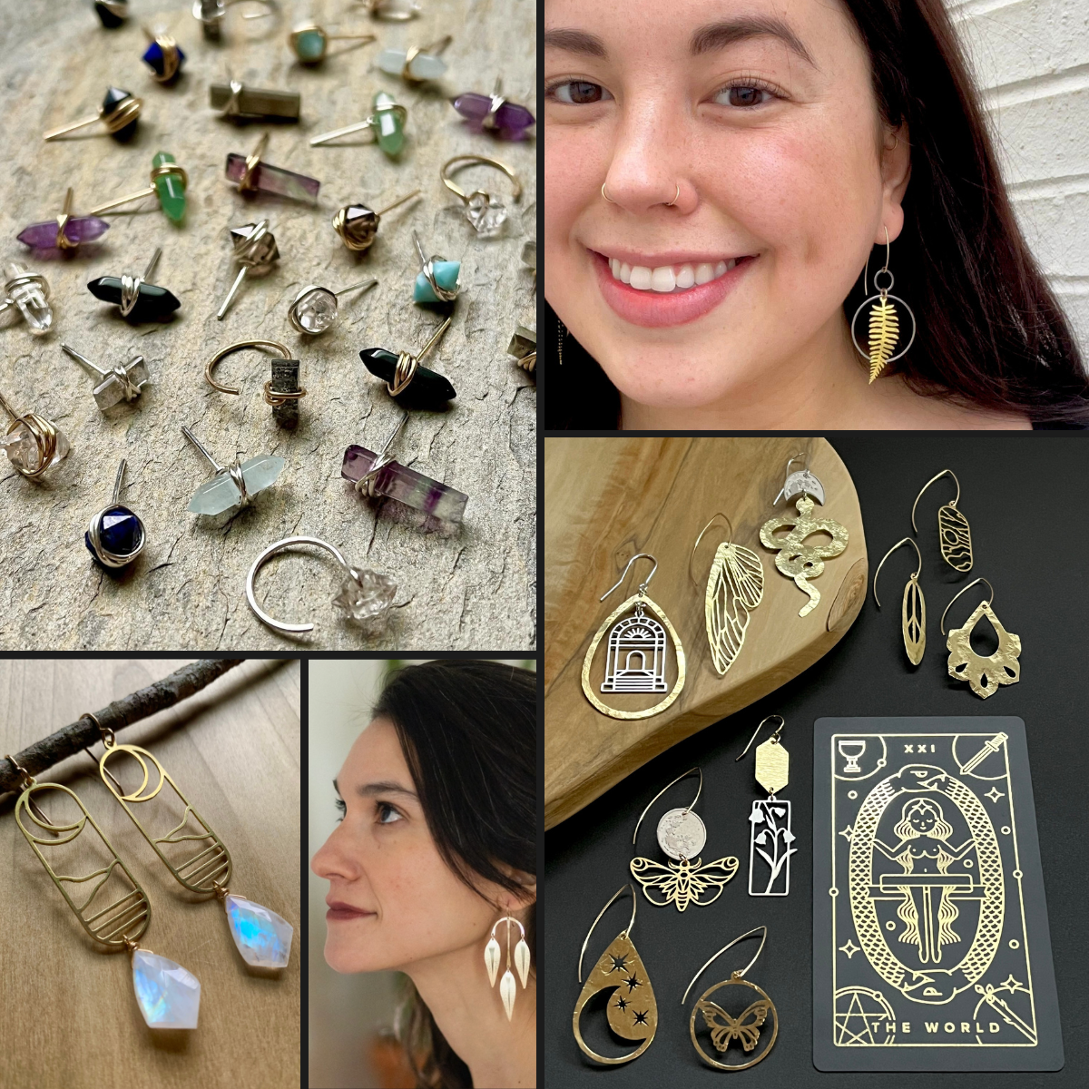 •MONSTERA TRIO• brass + silver post dangle earrings