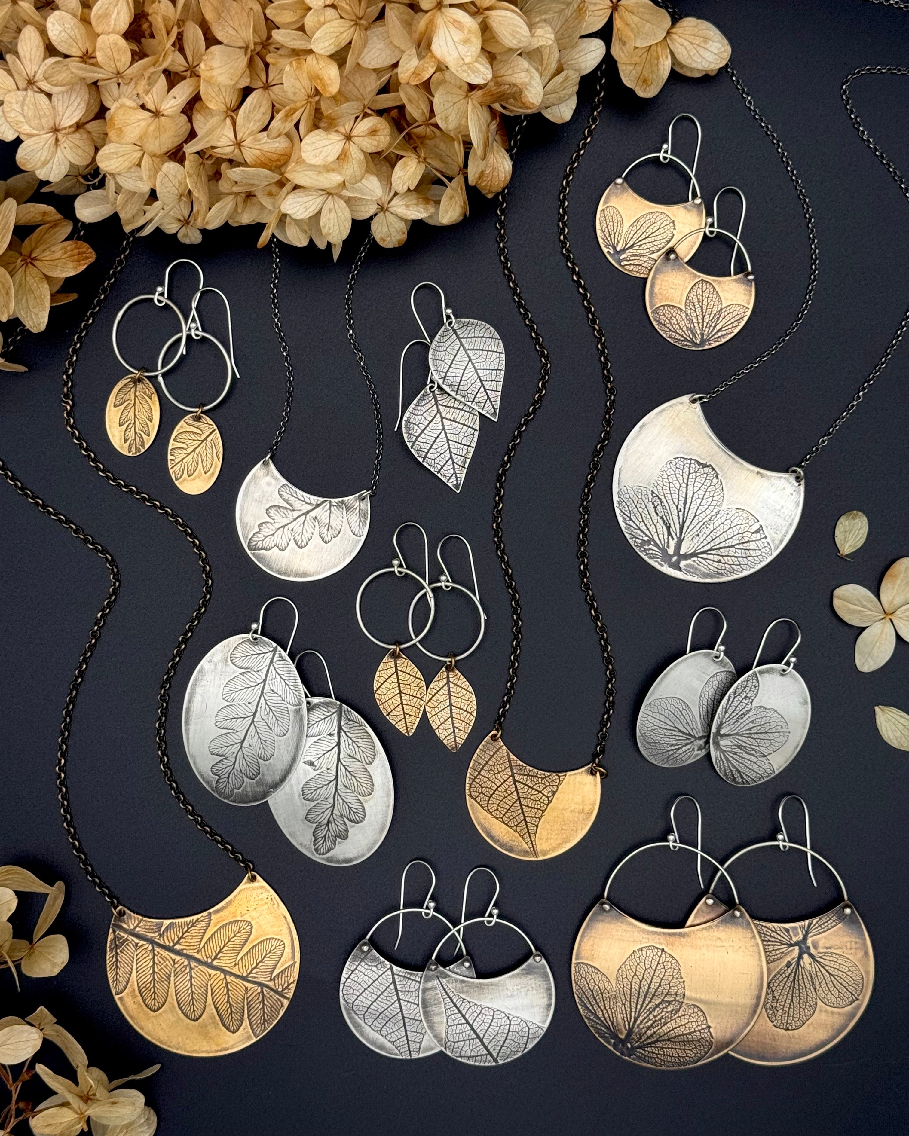 •HYDRANGEA CRESCENT• brass necklace (20" long)
