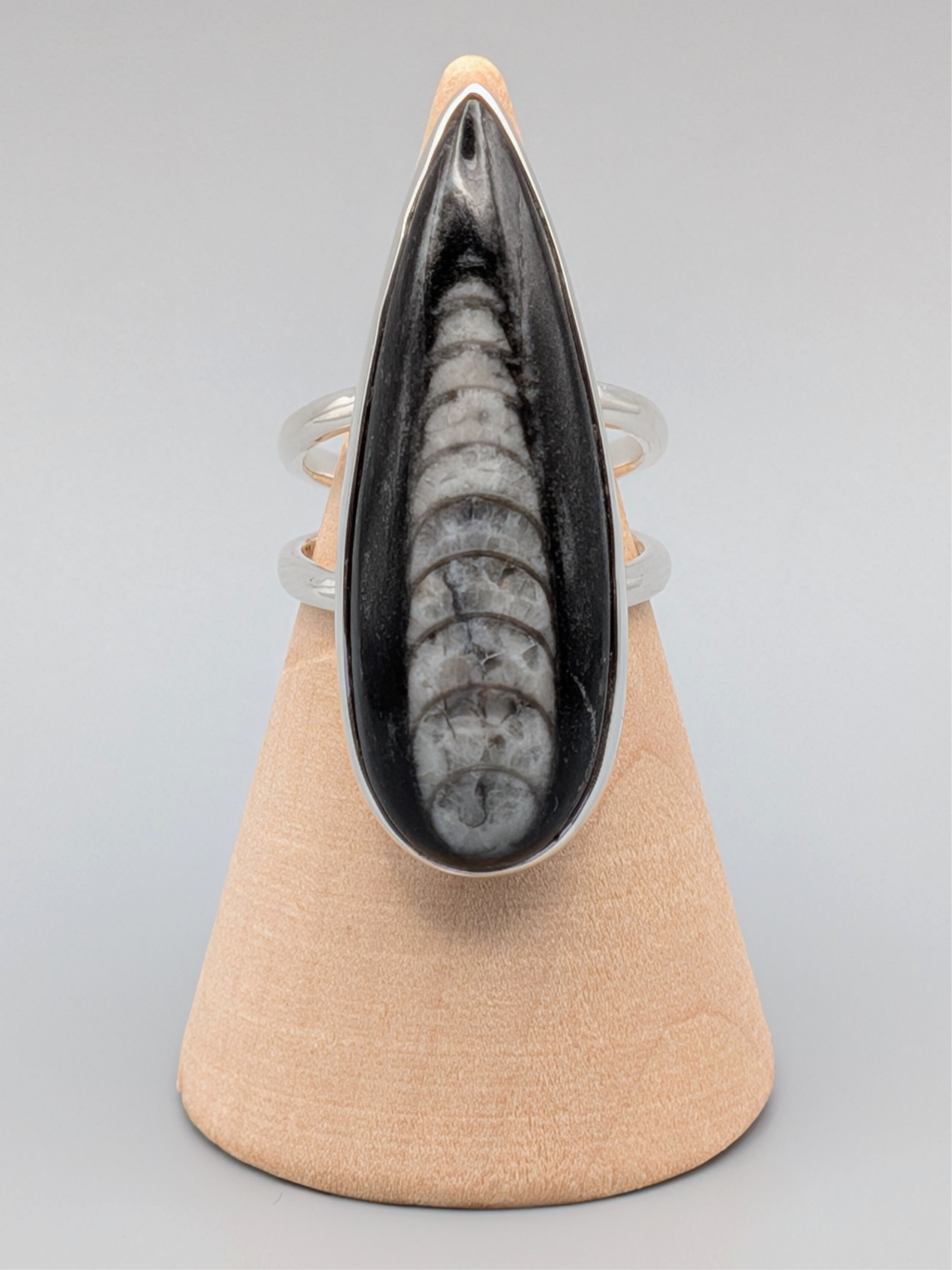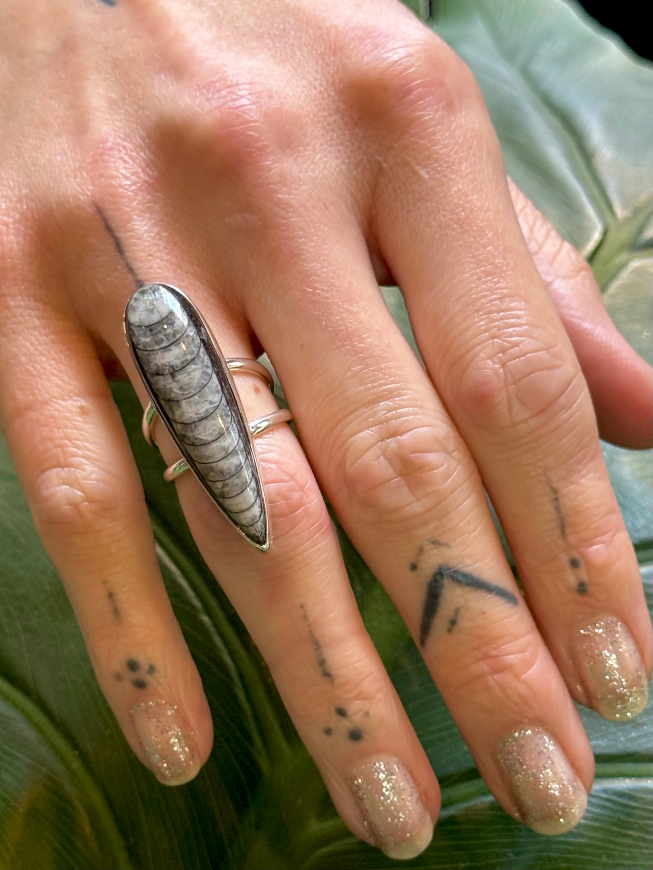 •ORTHOCERAS - TEARDROP• simple bezel silver ring (size 10)