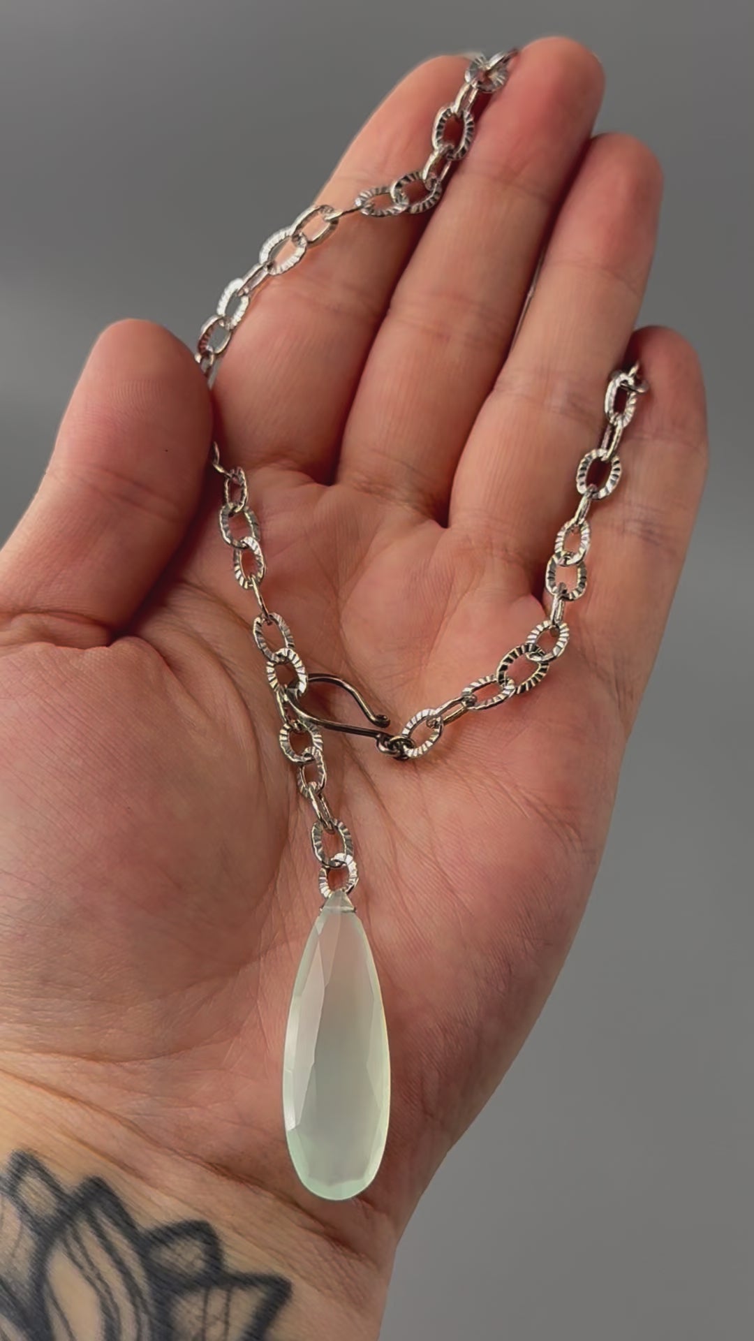 •LINKED• aqua chalcedony + silver necklace (ADJ to 19")