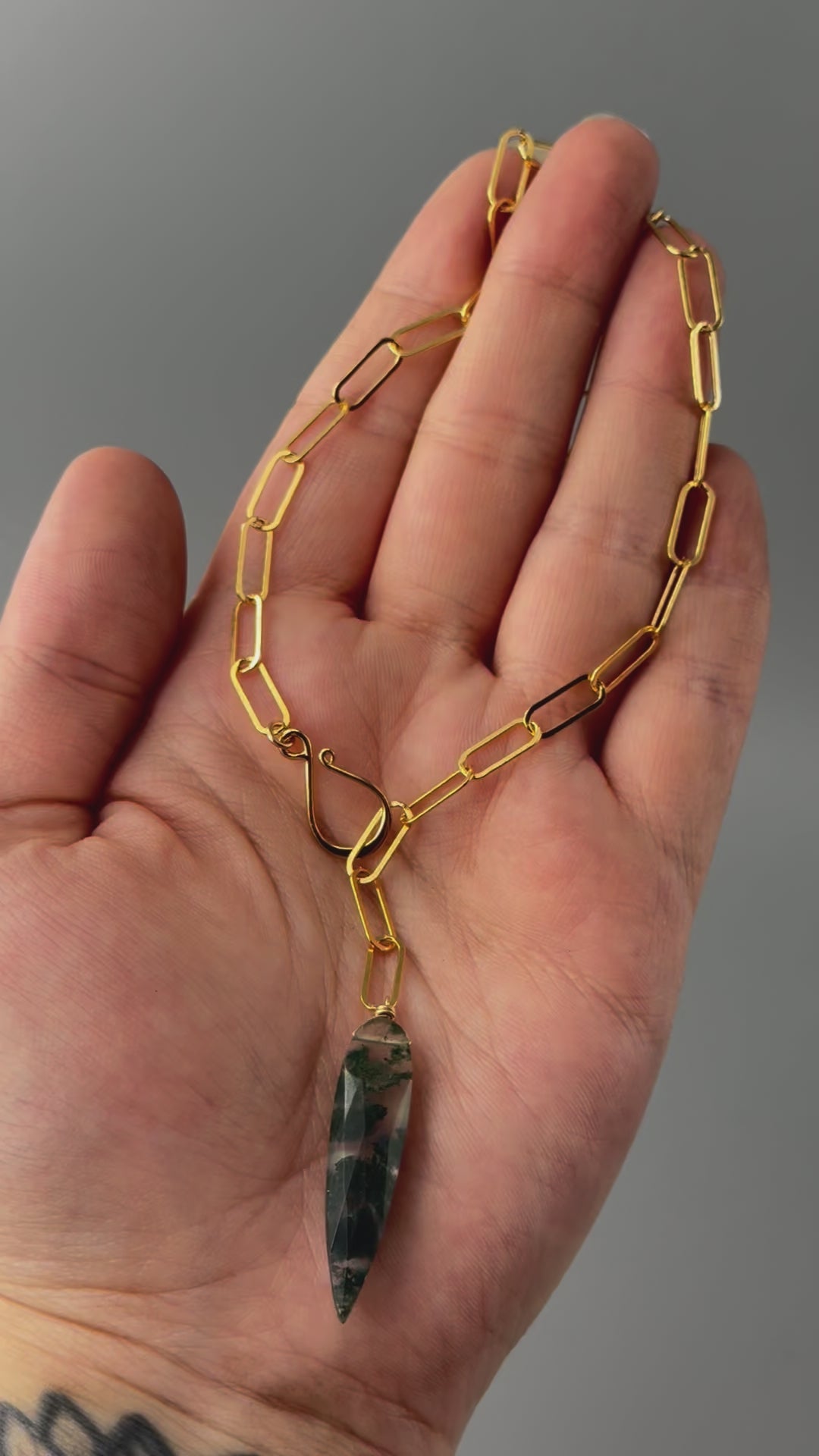 •LINKED• moss agate + gold necklace (ADJ to 19")