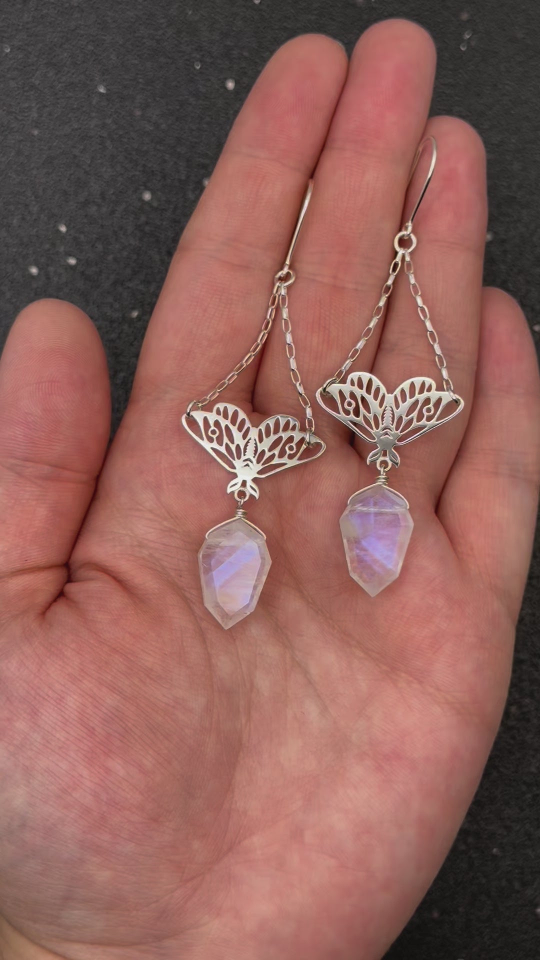 •GUIDE• rainbow moonstone + silver dangle earrings