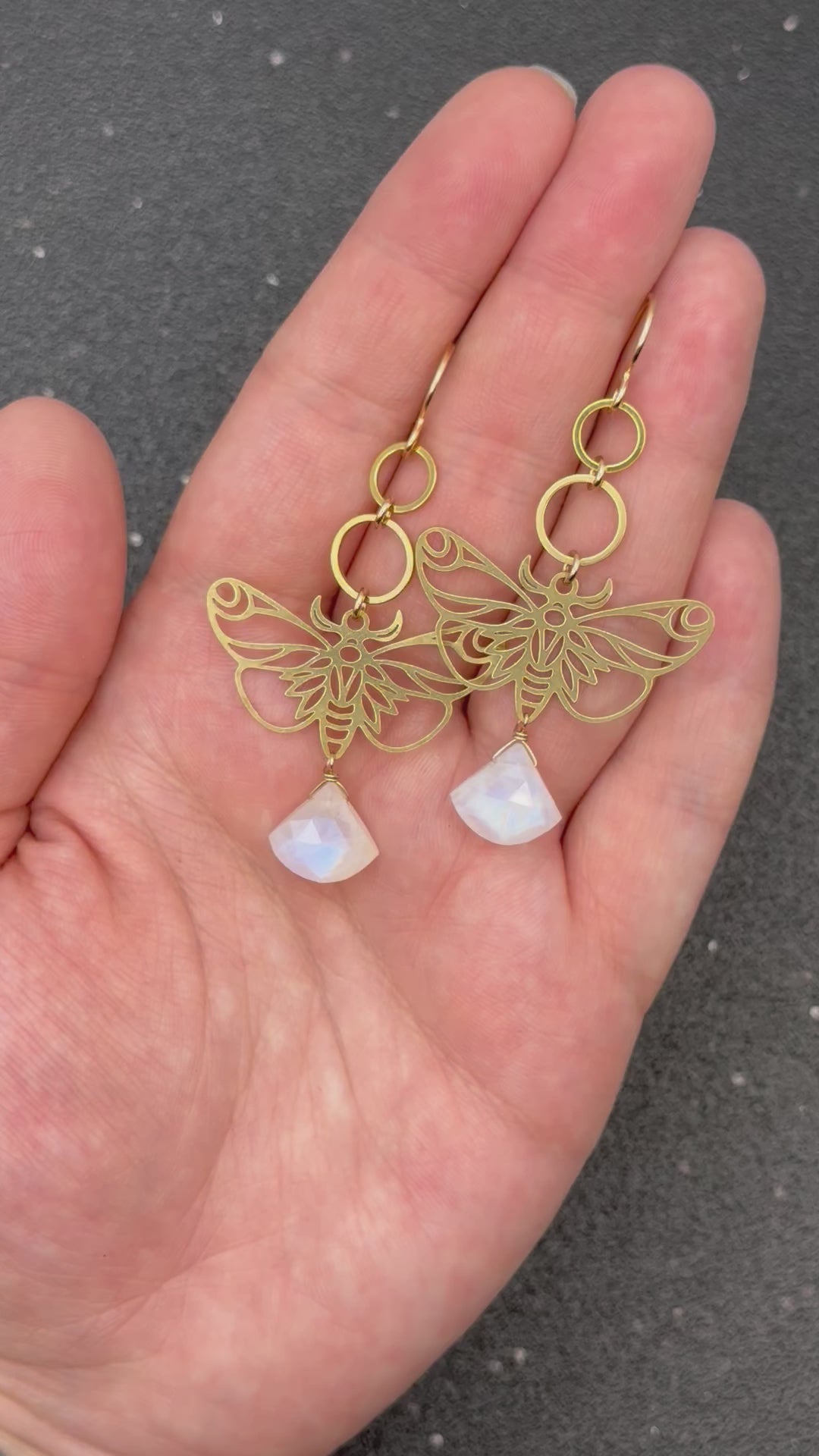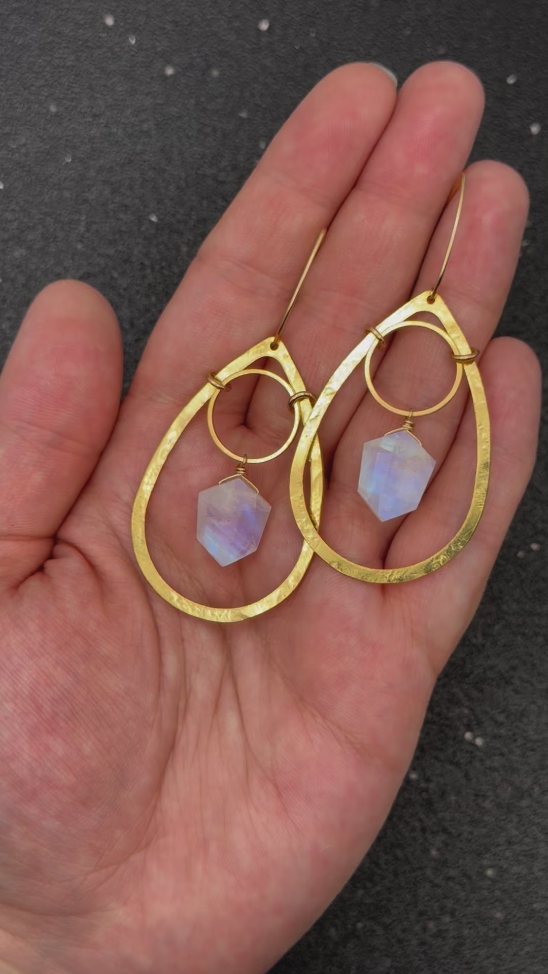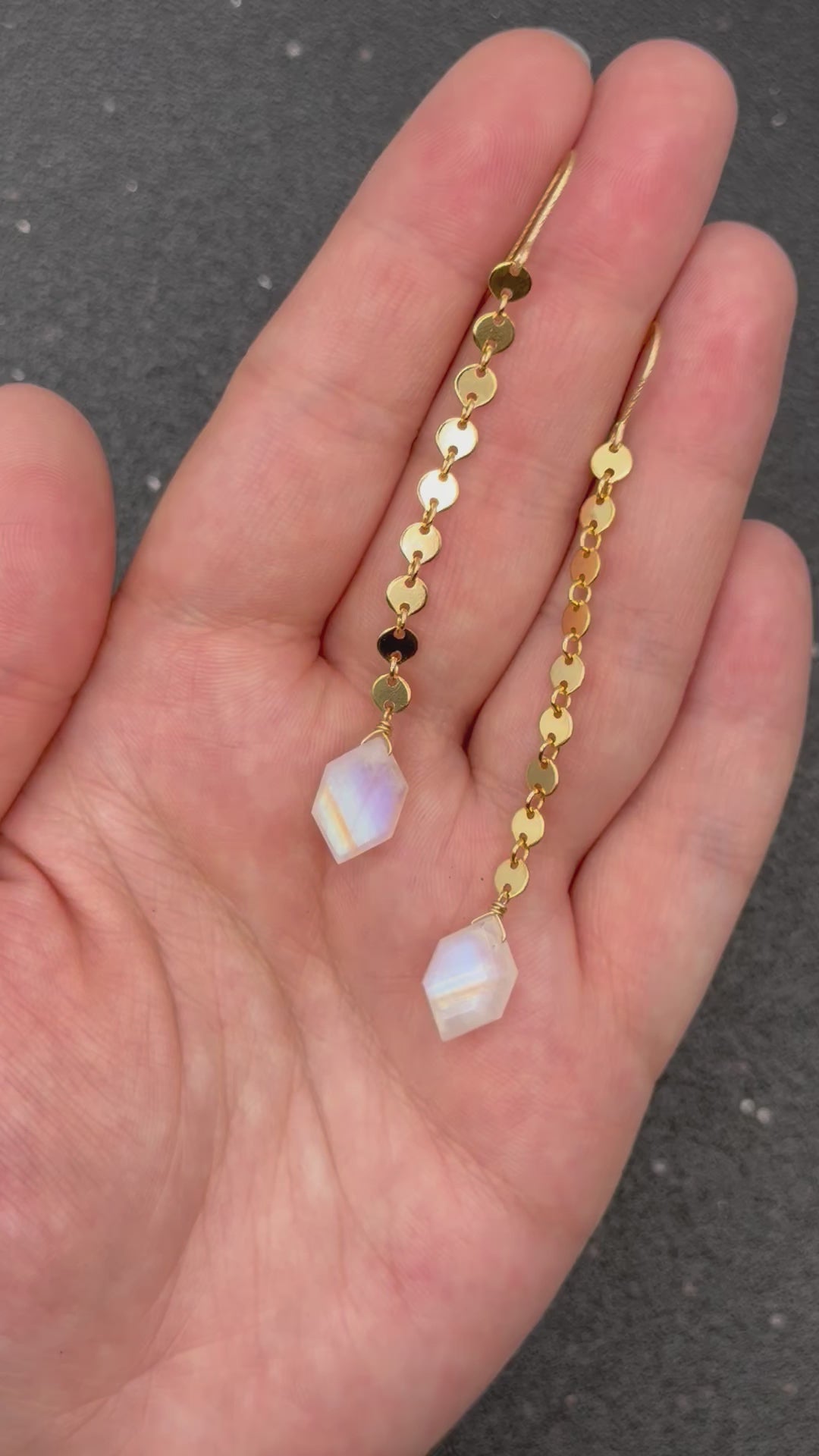 •ECLIPSE• rainbow moonstone + gold dangle earrings