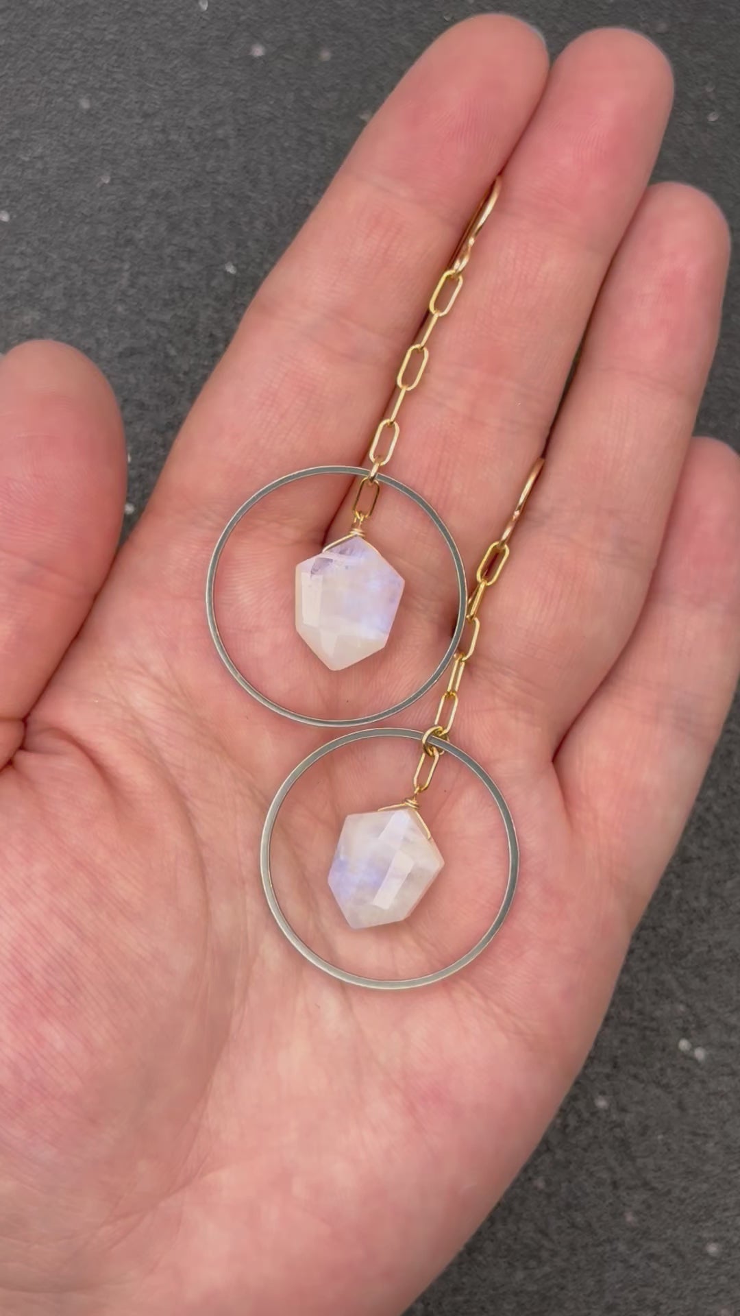 •ECLIPSE SWING• rainbow moonstone + mixed metal dangle earrings
