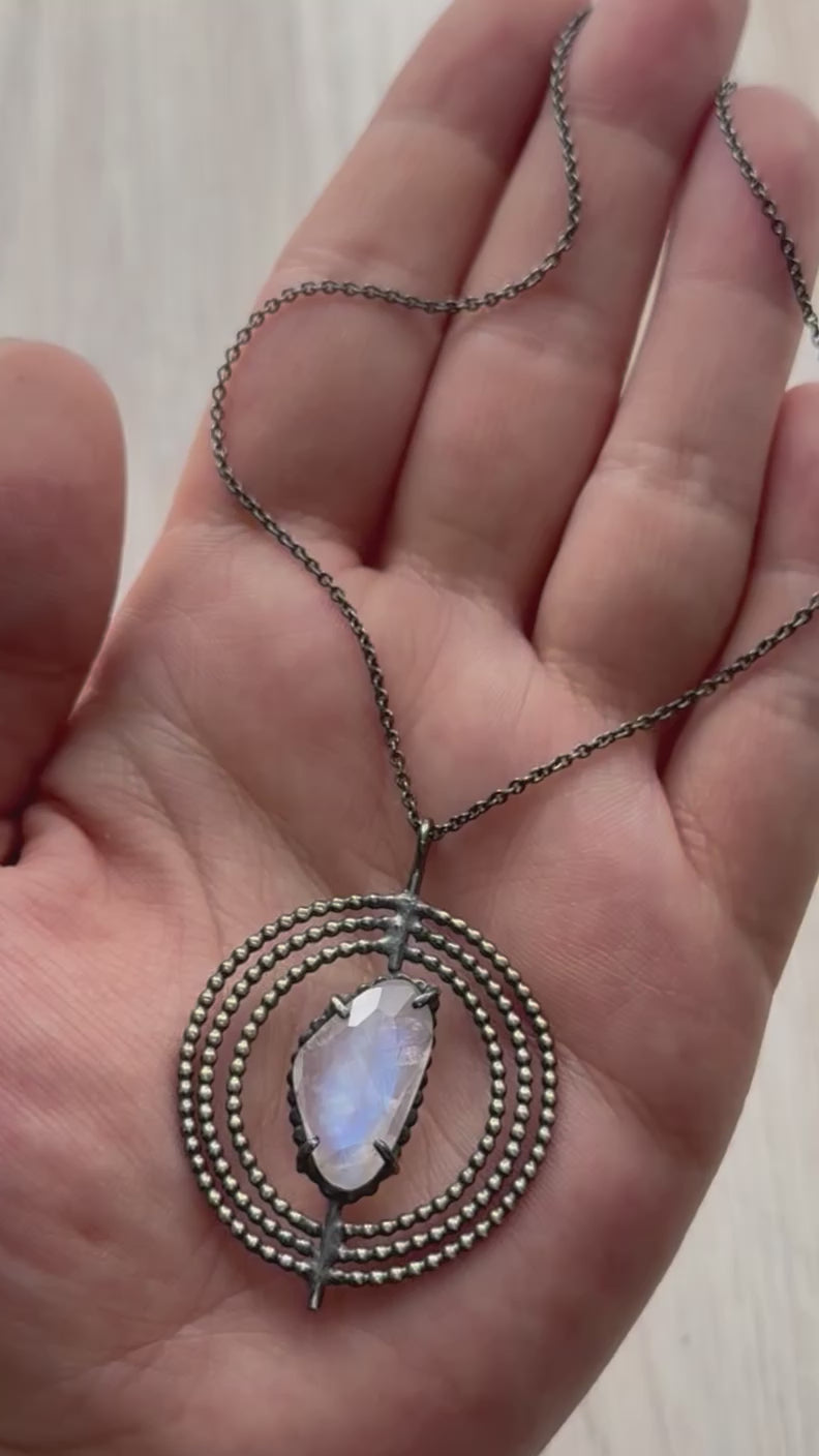 •ROOT• rainbow moonstone + silver necklace (various lengths)