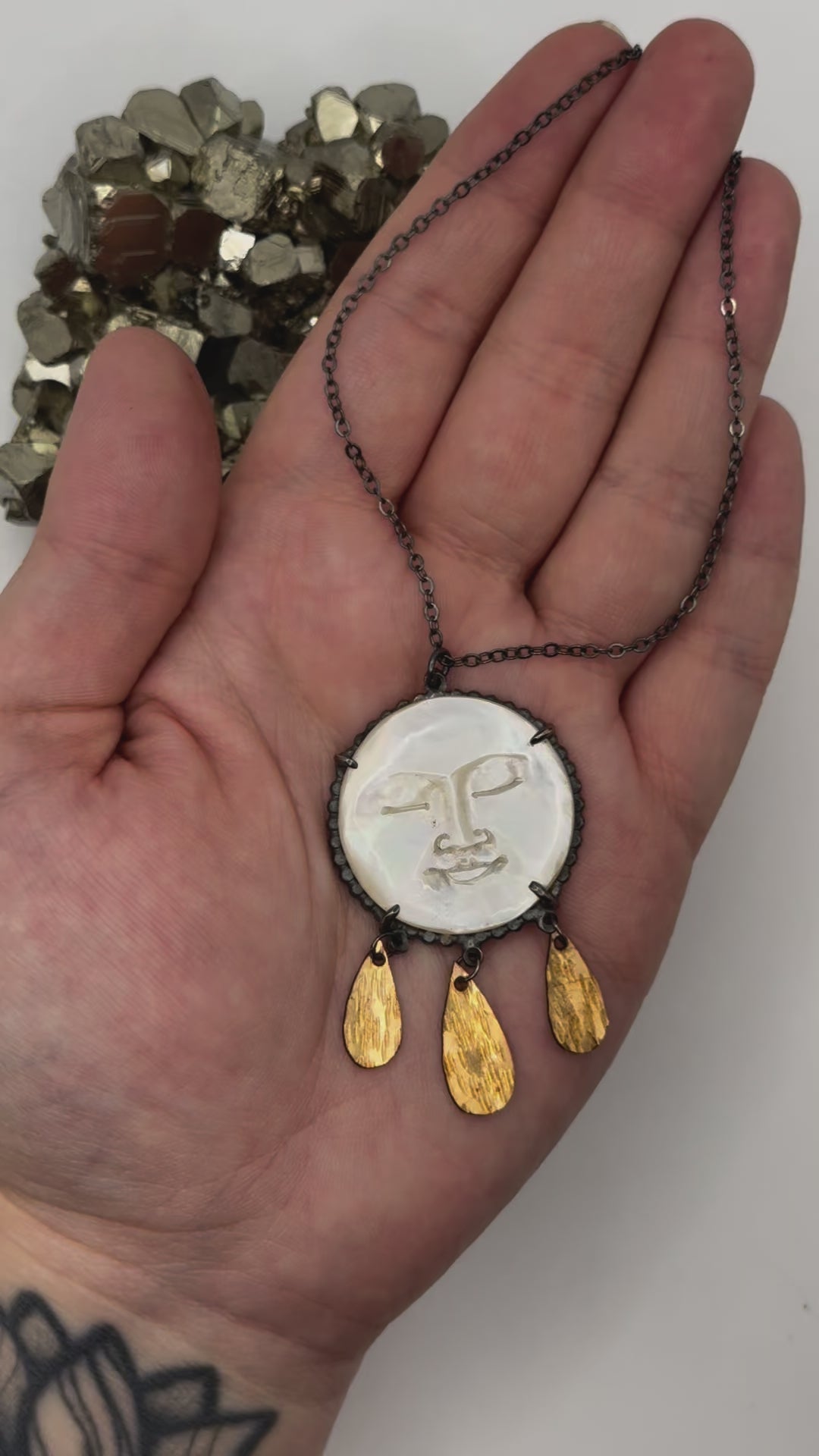 •LUNA DROPLETS• carved mother of pearl + mixed metal necklace (18" long)