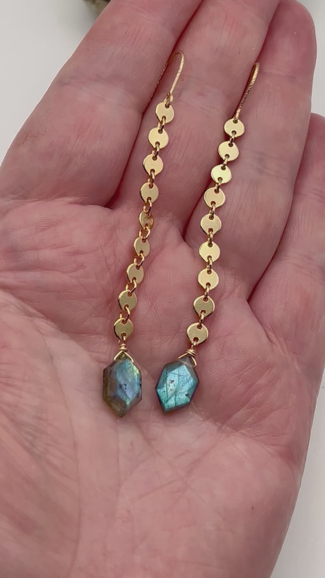 •CELESTINE• rainbow moonstone + gold dangle earrings