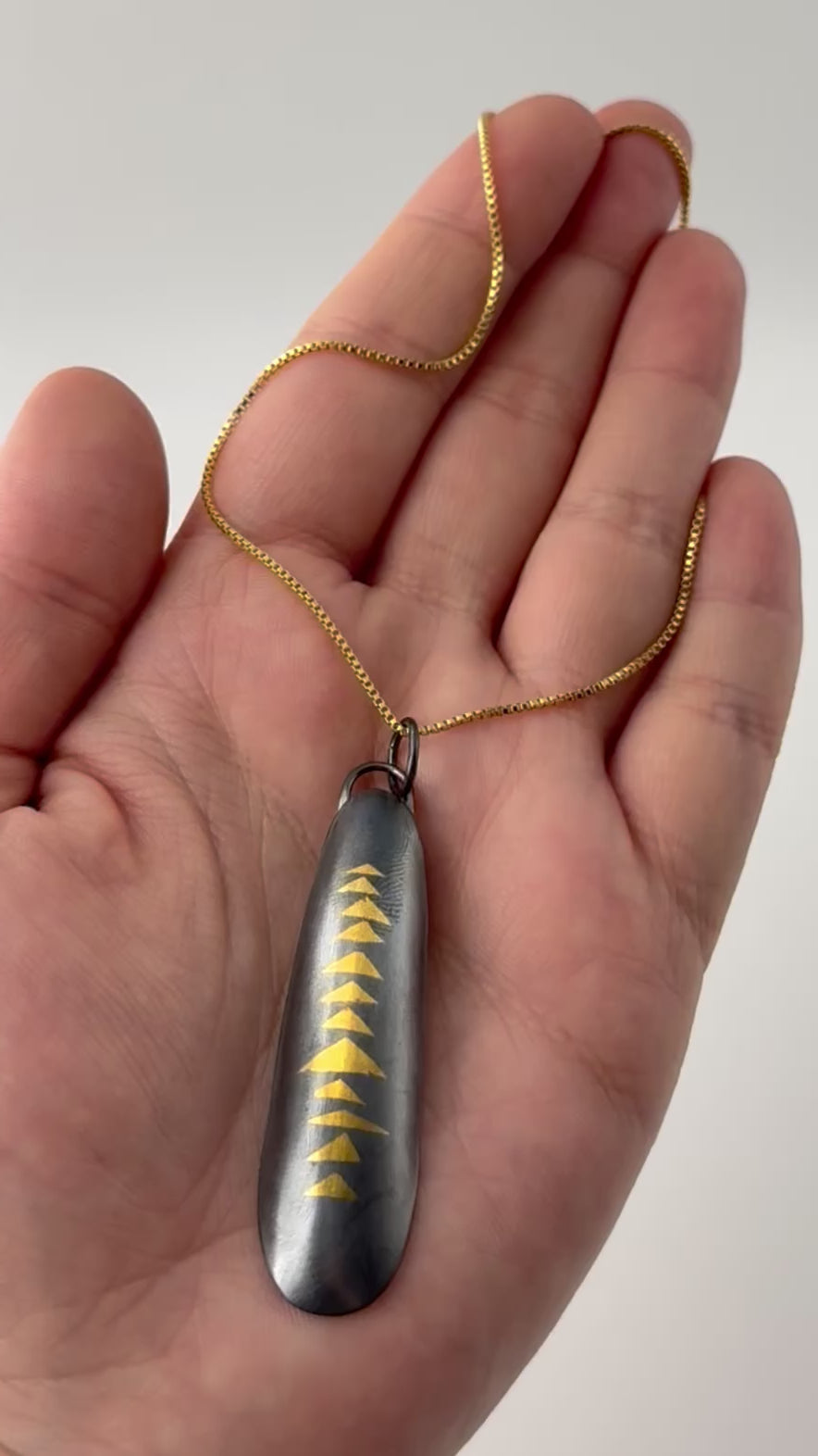 •KEUM-BOO TRIANGLES• oxidized silver + gold necklace (16" long)