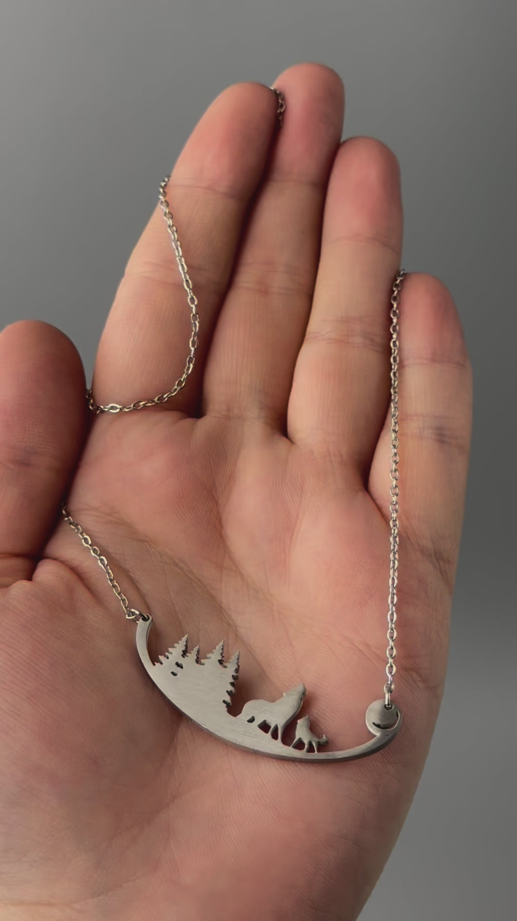 •MAMA WOLF & PUP• stainless steel necklace (17" or 20" long)