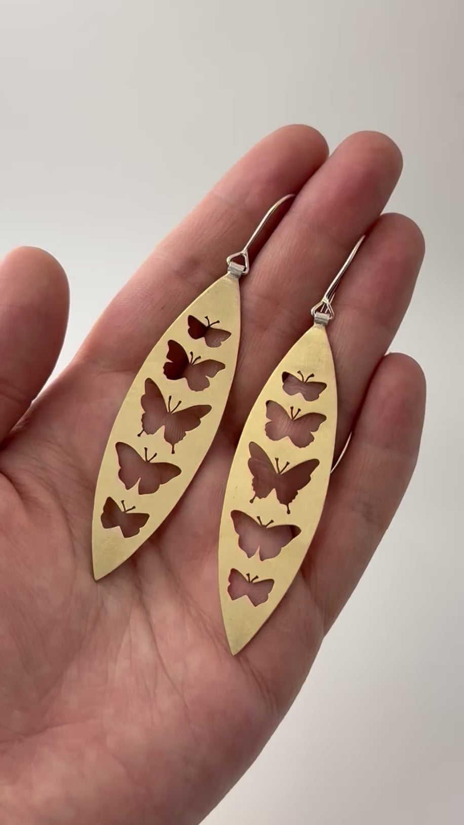 •BUTTERFLY TOTEM• brass + silver cutout earrings