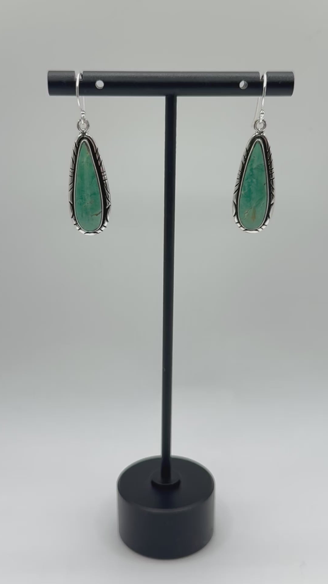 •KINGMAN TURQUOISE TEARDROP - 3• Navajo silver dangle earrings