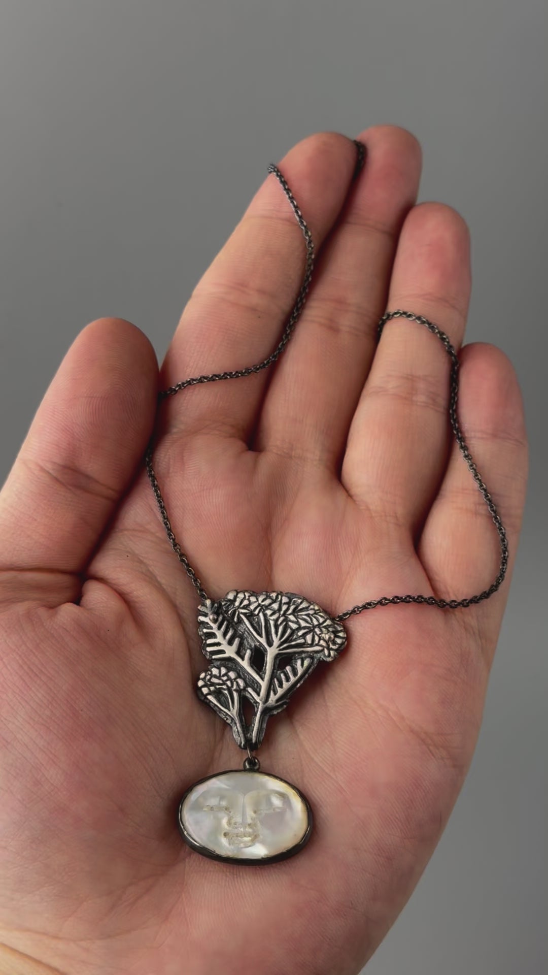 •LADY MUGWORT• carved mother of pearl + silver necklace (18" long)