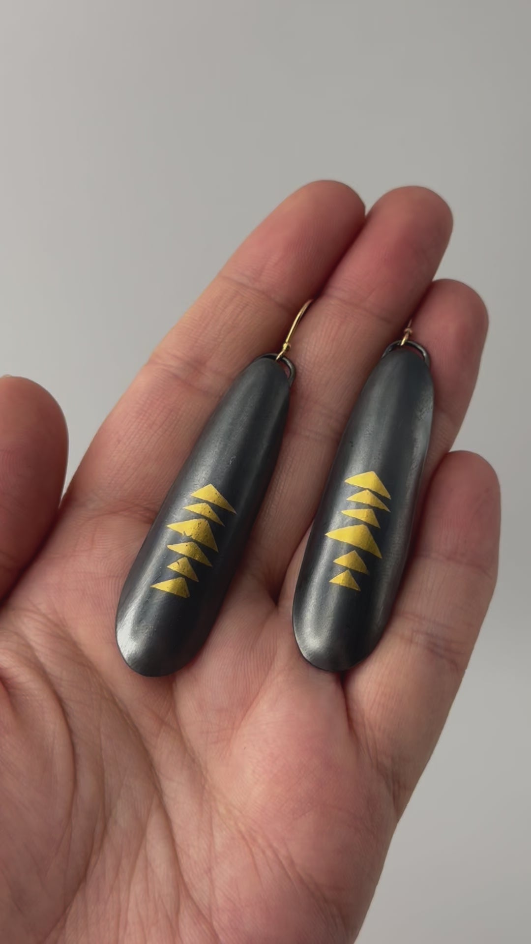 •KEUM-BOO TRIANGLES• oxidized silver + gold dangle earrings
