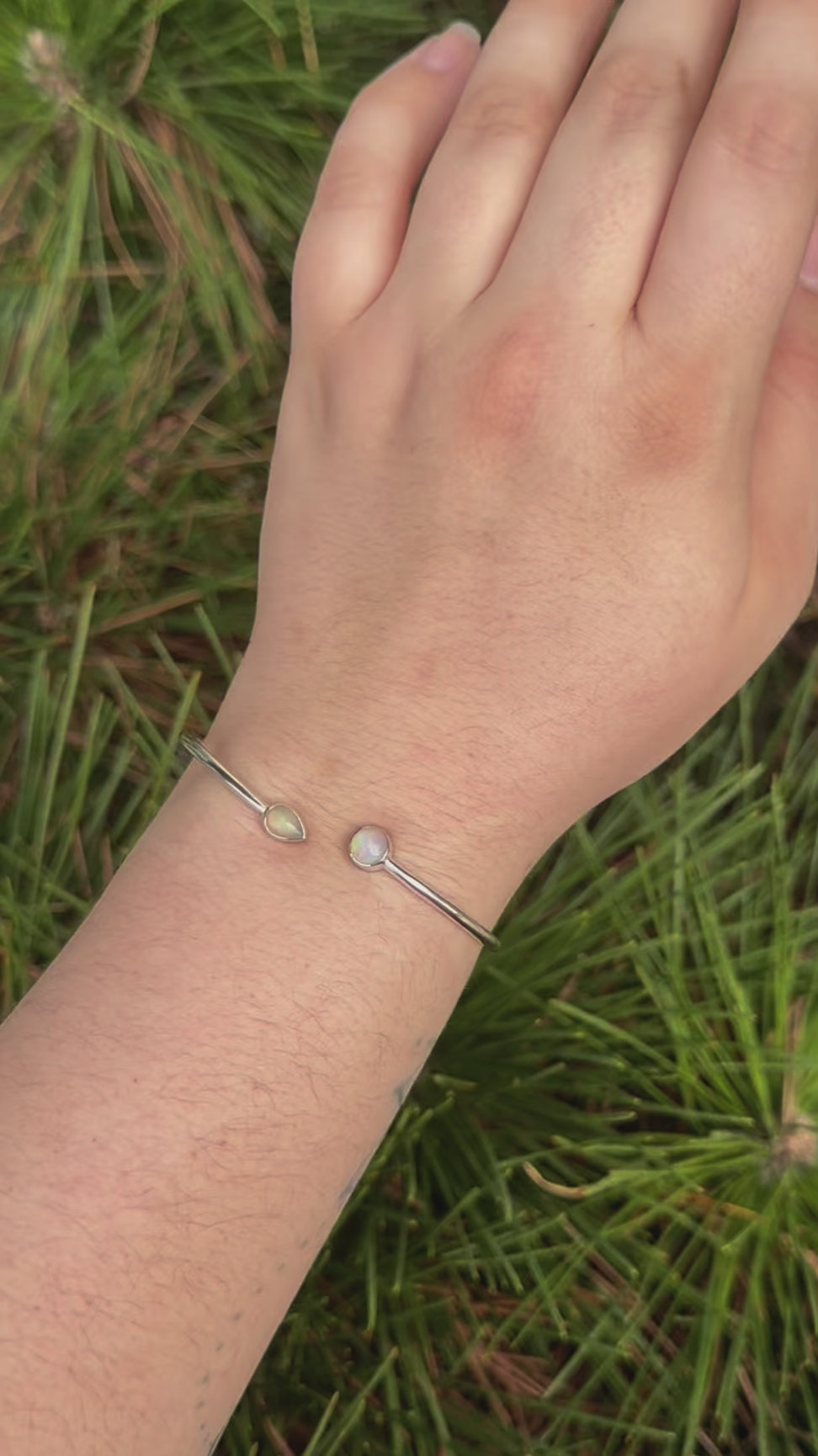 •CIRCLE + TEARDROP• ethiopian opal + silver twist-on cuff bracelet