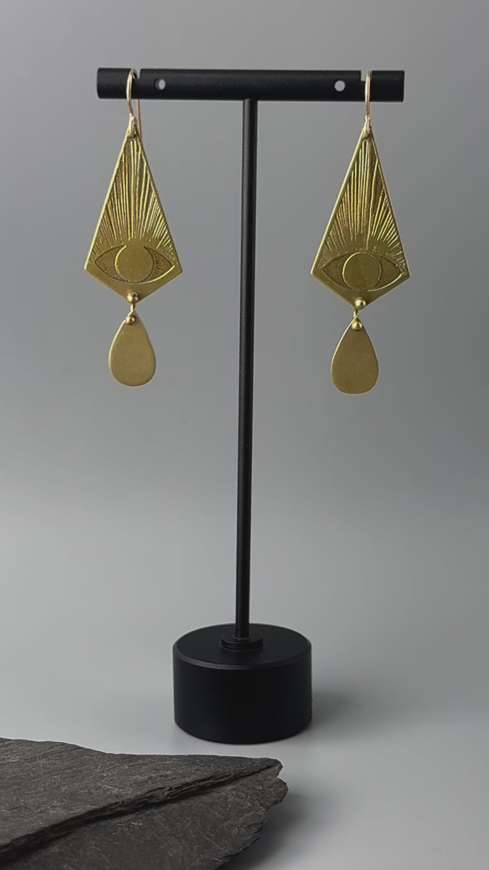 Erin is a jewelry designer that handmakes her pieces in Easthampton, Massachusetts. She references armor and talismans that provide the wearer with a sense of grounding and protection. Erin plays with themes of structure and decay, utility and cosmology, the natural world and the industrial world, and overall simplicity, resulting in jewelry that is both bold and everyday wearable. All earrings are handmade in brass with upgraded 14KGF ear wires, and her necklaces are entirely brass.