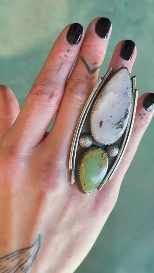•DUALITY• royston turquoise + pink opal + silver ring (size 8)
