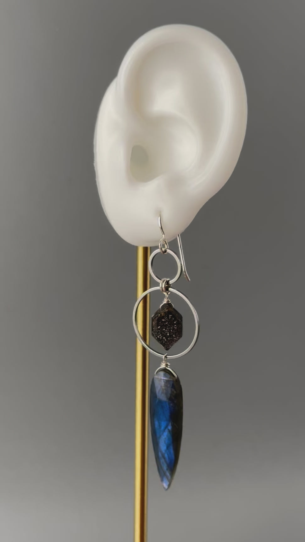 •EQUA-LUNA• black aventurine + labradorite + silver earrings