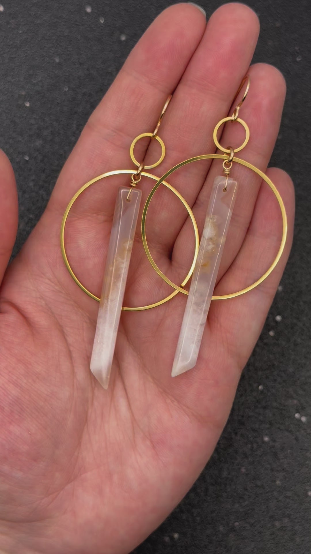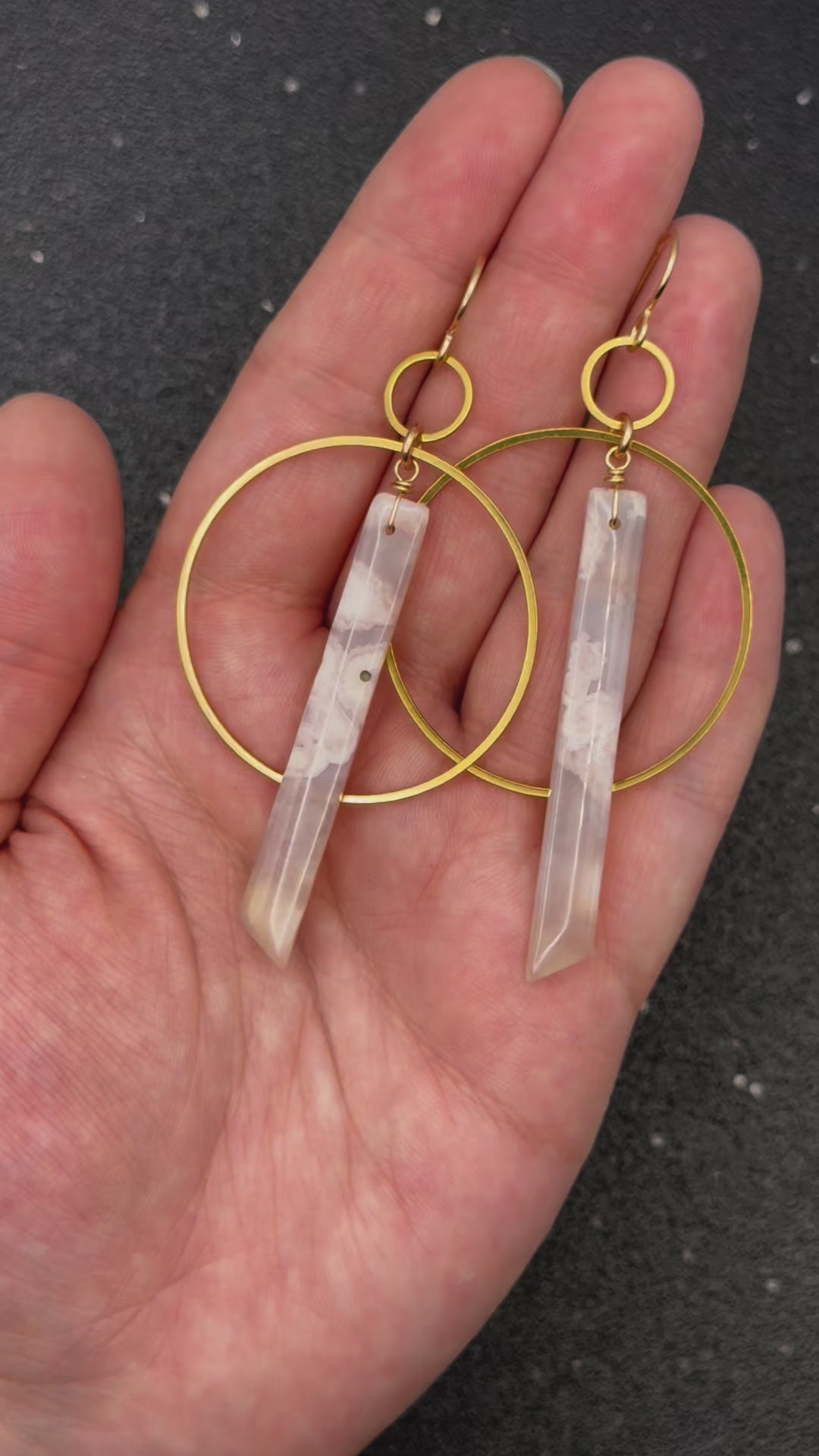 •EQUA-ORBIT• cherry blossom agate + gold dangle earrings