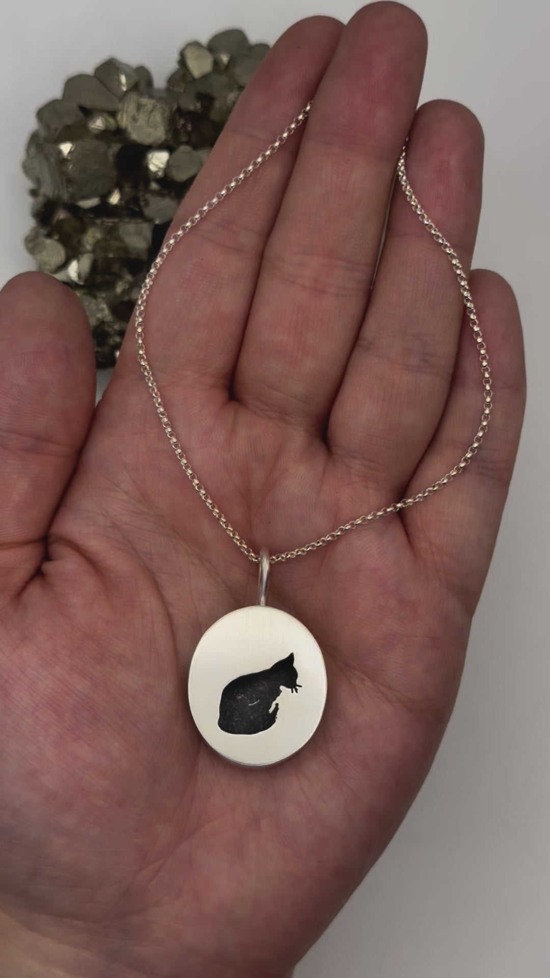 •FELINE GOOD• cat shadowbox silver necklace (18"-21" long)