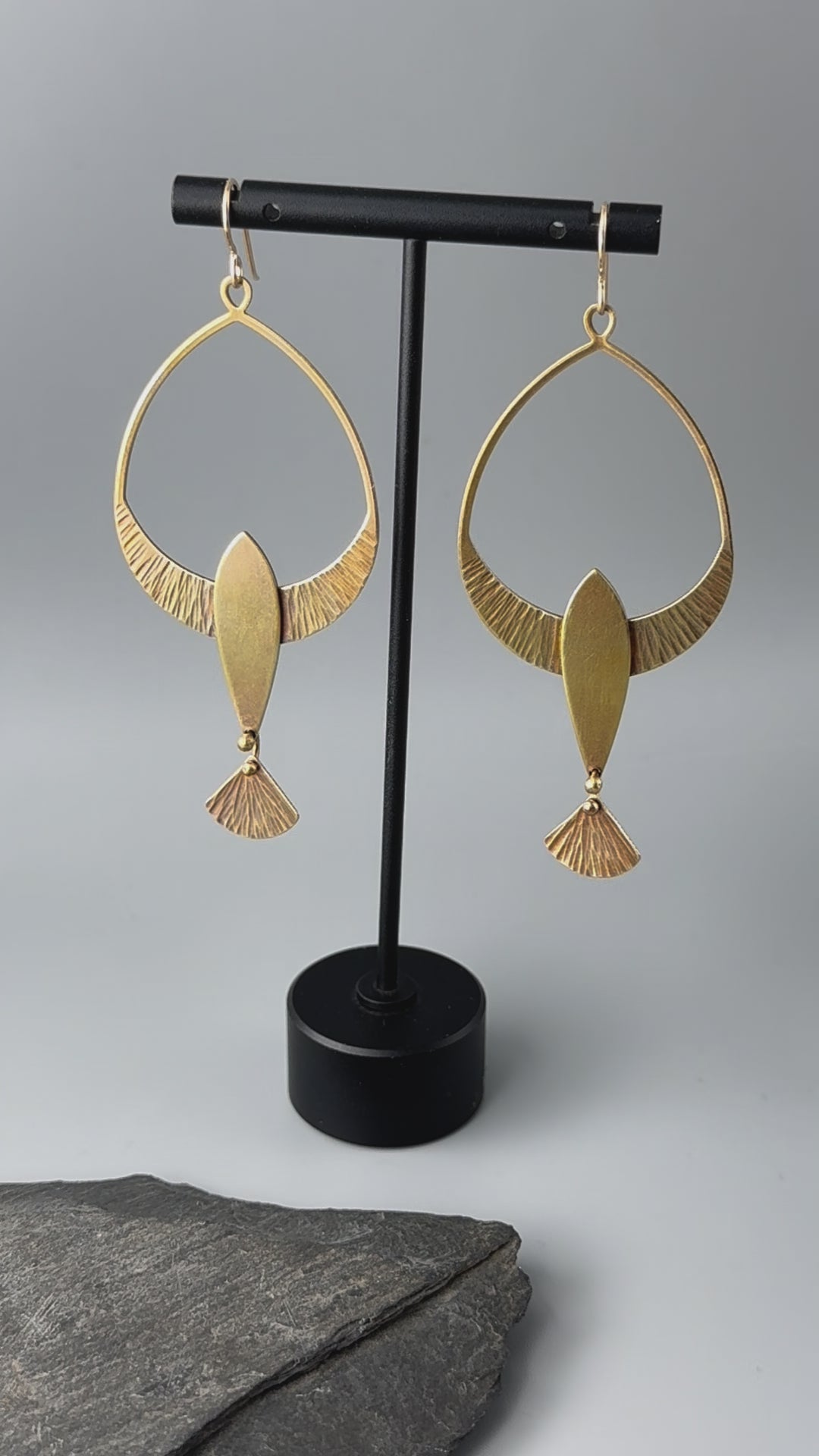 Erin is a jewelry designer that handmakes her pieces in Easthampton, Massachusetts. She references armor and talismans that provide the wearer with a sense of grounding and protection. Erin plays with themes of structure and decay, utility and cosmology, the natural world and the industrial world, and overall simplicity, resulting in jewelry that is both bold and everyday wearable. All earrings are handmade in brass with upgraded 14KGF ear wires, and her necklaces are entirely brass.