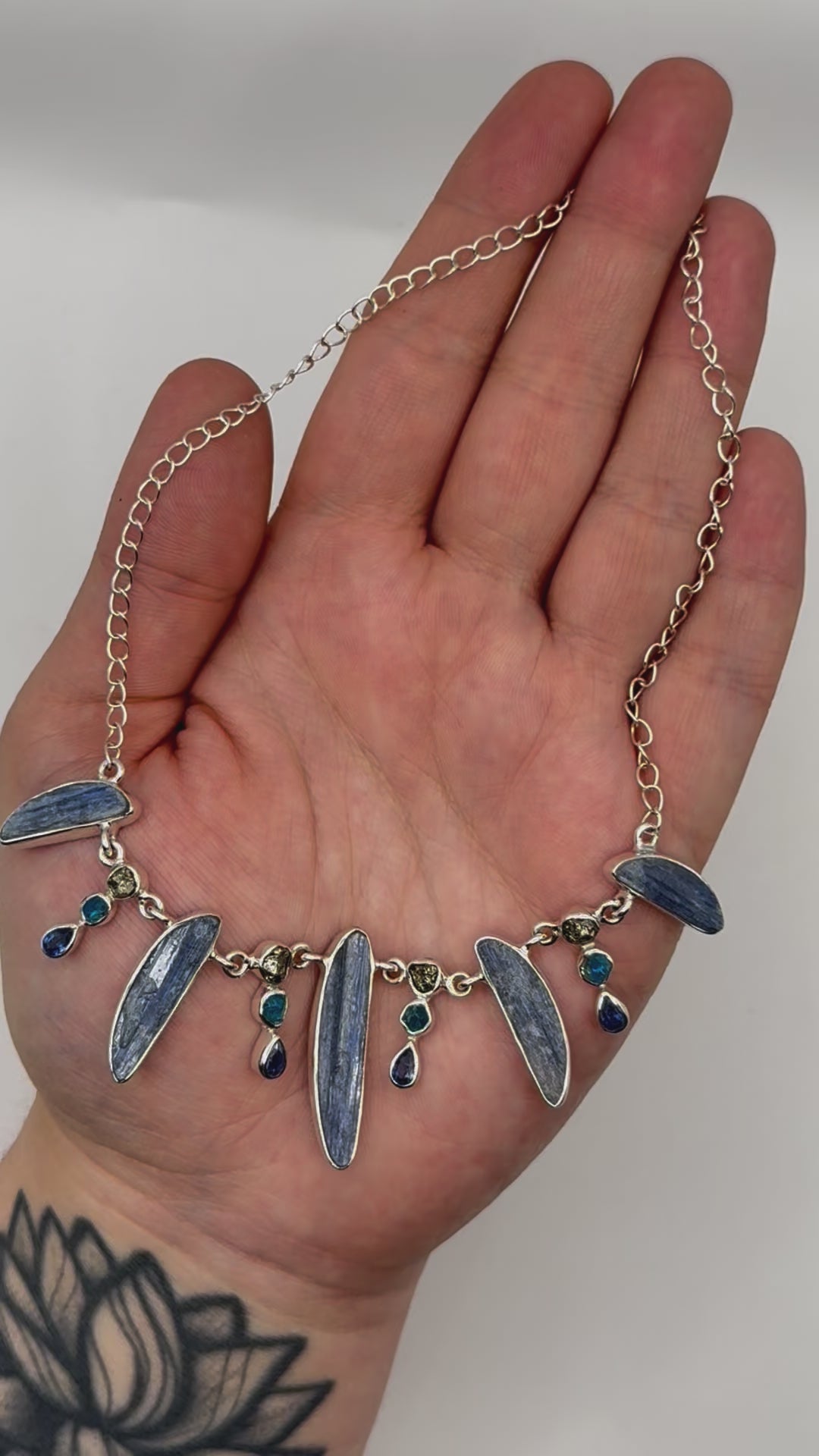 •KYANITE + PYRITE + APATITE• multi-stone + silver necklace (ADJ to 18")