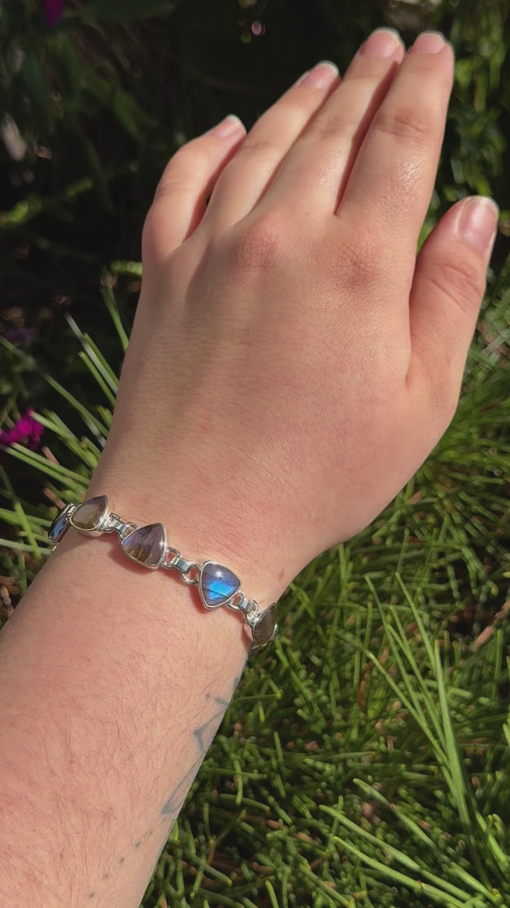 •LABRADORITE SOFT TRIANGLES• multi-stone + silver bracelet (6.5"-7.5")