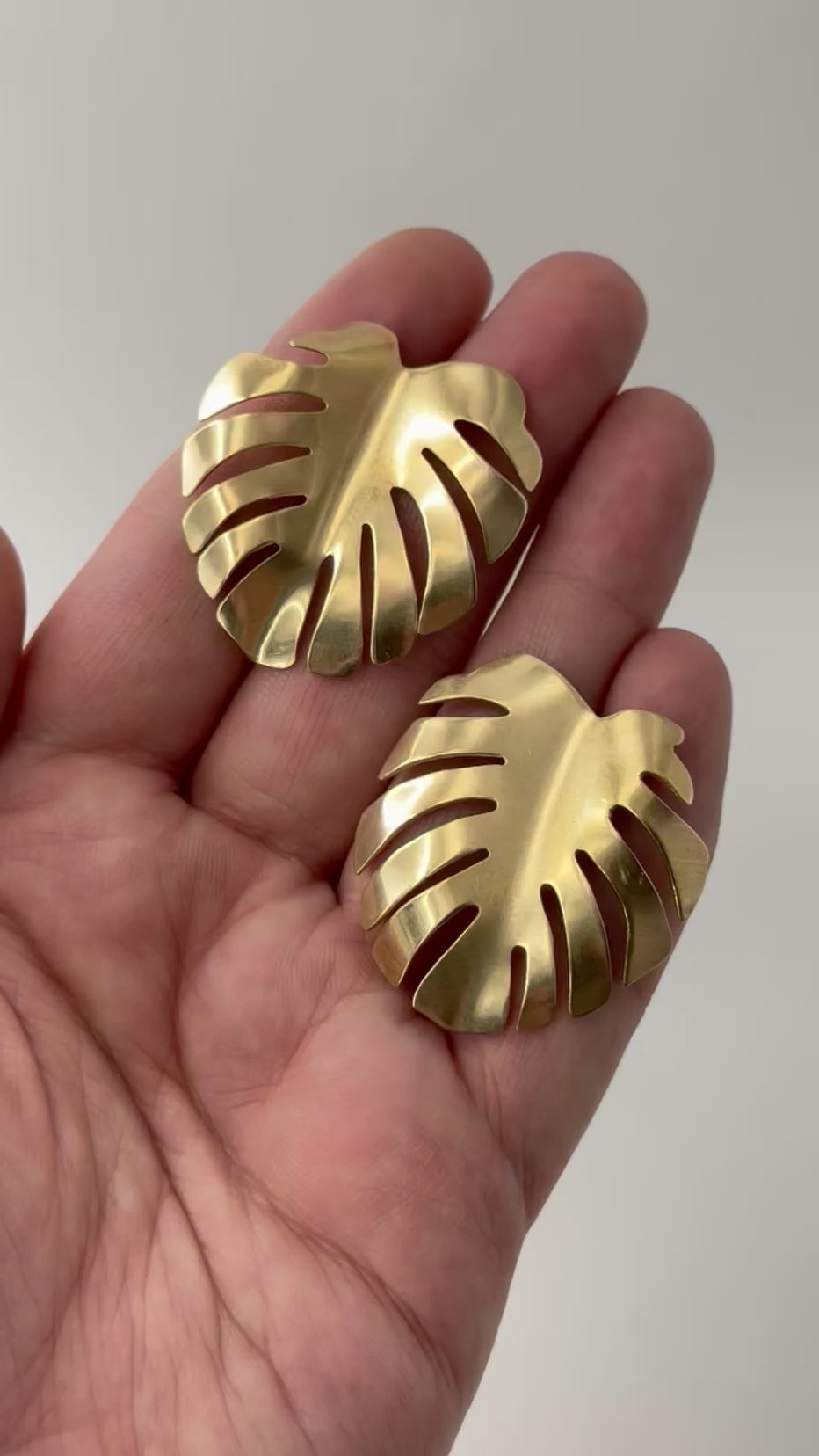 •LARGE MONSTERA• brass + silver post earrings