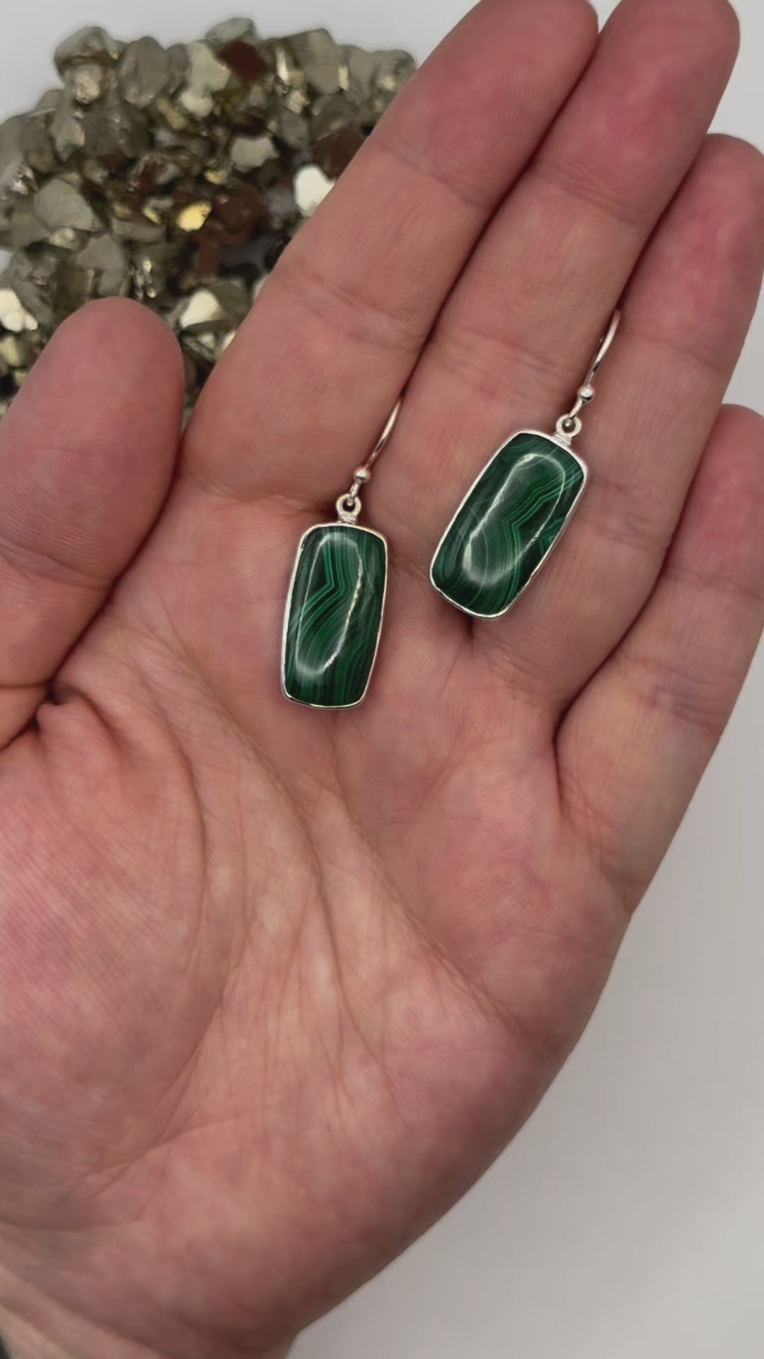 •MALACHITE SOFT RECTANGLE• silver dangle earrings