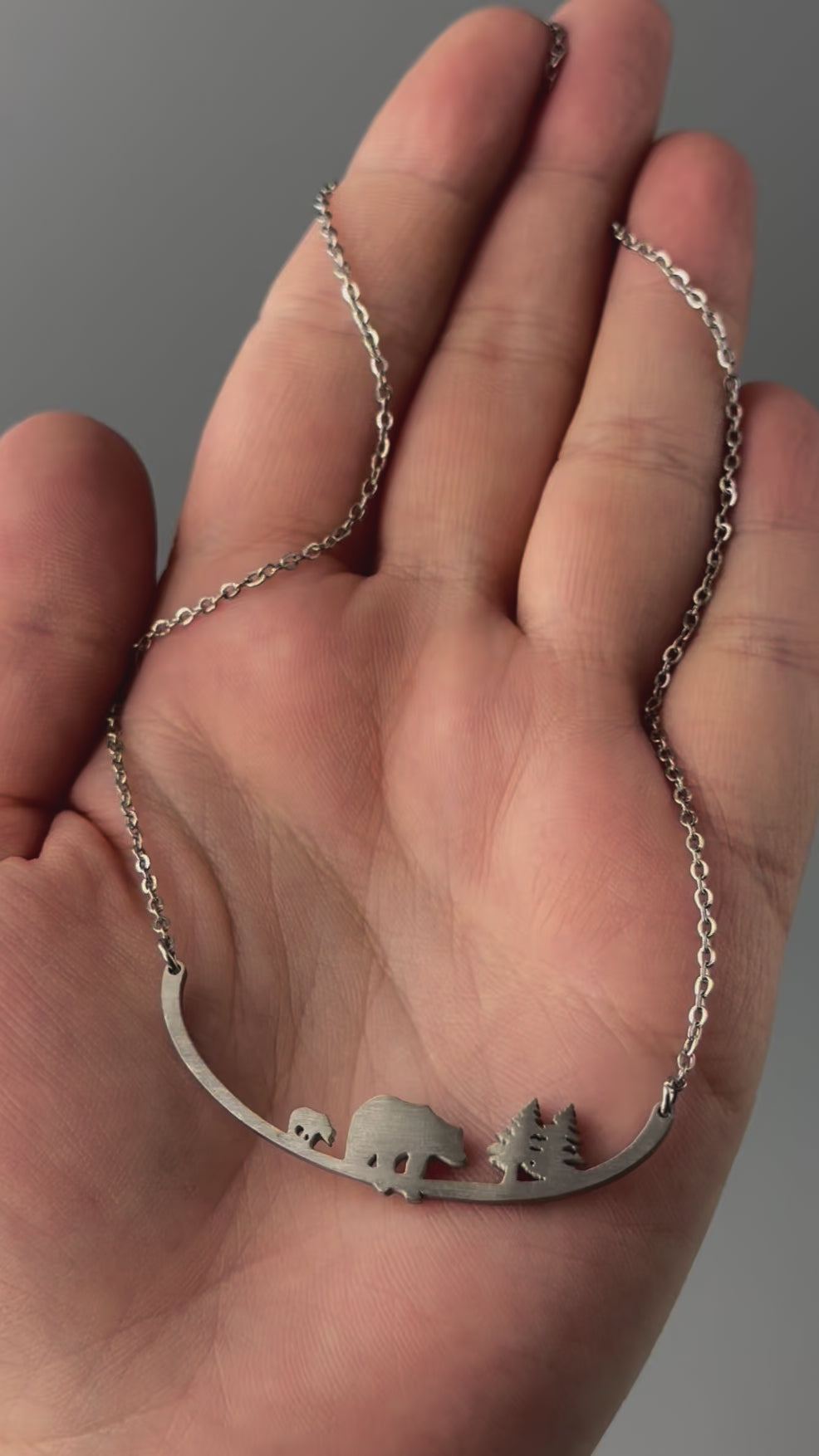 •MAMA BEAR & CUB• stainless steel necklace (17" or 20" long)