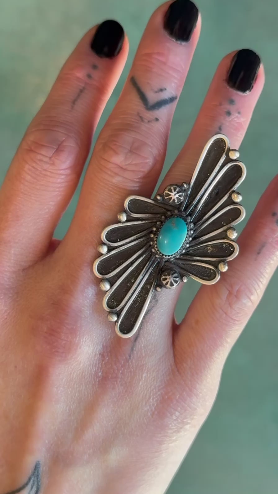 •NOUVEAU BLOOM• turquoise + pyrite + silver ring (size 8)
