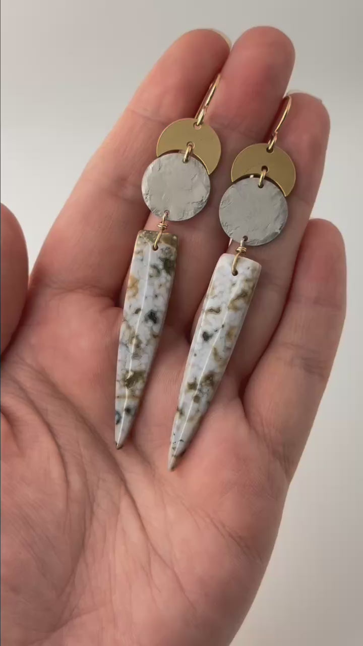 These dangle earrings are an original design by the shop owner Jordana, handmade by her in Asheville and exclusive to ELEMENTALITY!