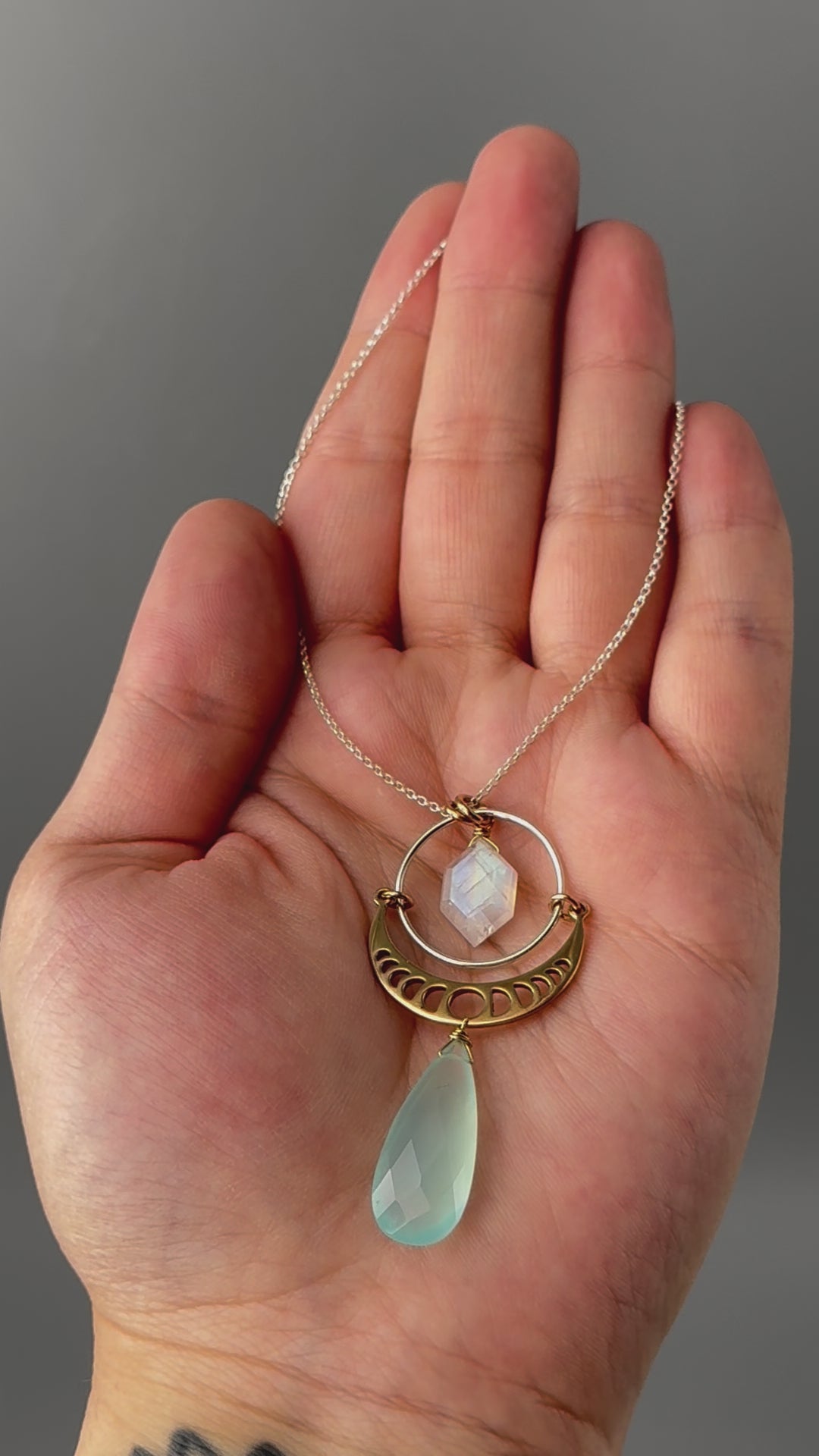 •NYX• rainbow moonstone + aqua chalcedony mixed metal necklace (18"-20" long)