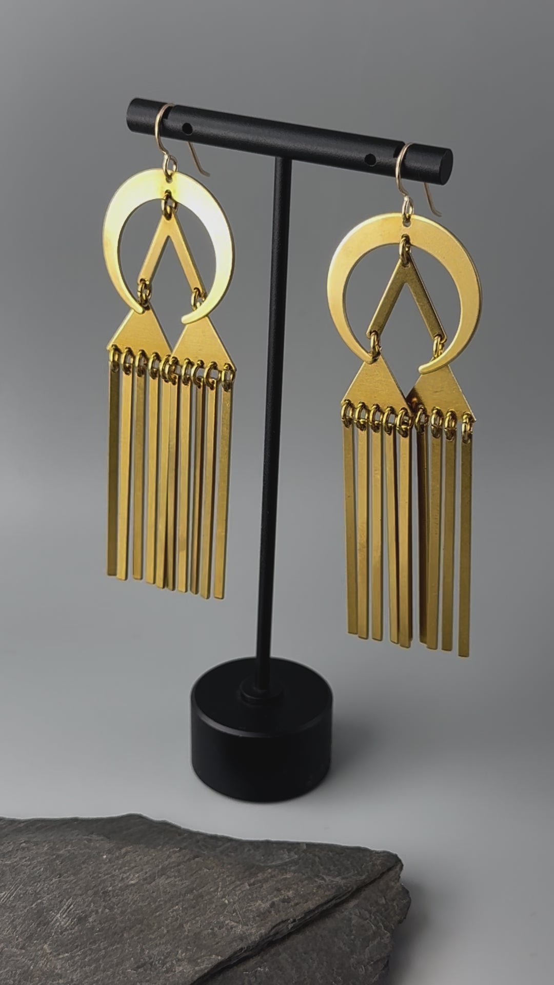 Erin is a jewelry designer that handmakes her pieces in Easthampton, Massachusetts. She references armor and talismans that provide the wearer with a sense of grounding and protection. Erin plays with themes of structure and decay, utility and cosmology, the natural world and the industrial world, and overall simplicity, resulting in jewelry that is both bold and everyday wearable. All earrings are handmade in brass with upgraded 14KGF ear wires, and her necklaces are entirely brass.