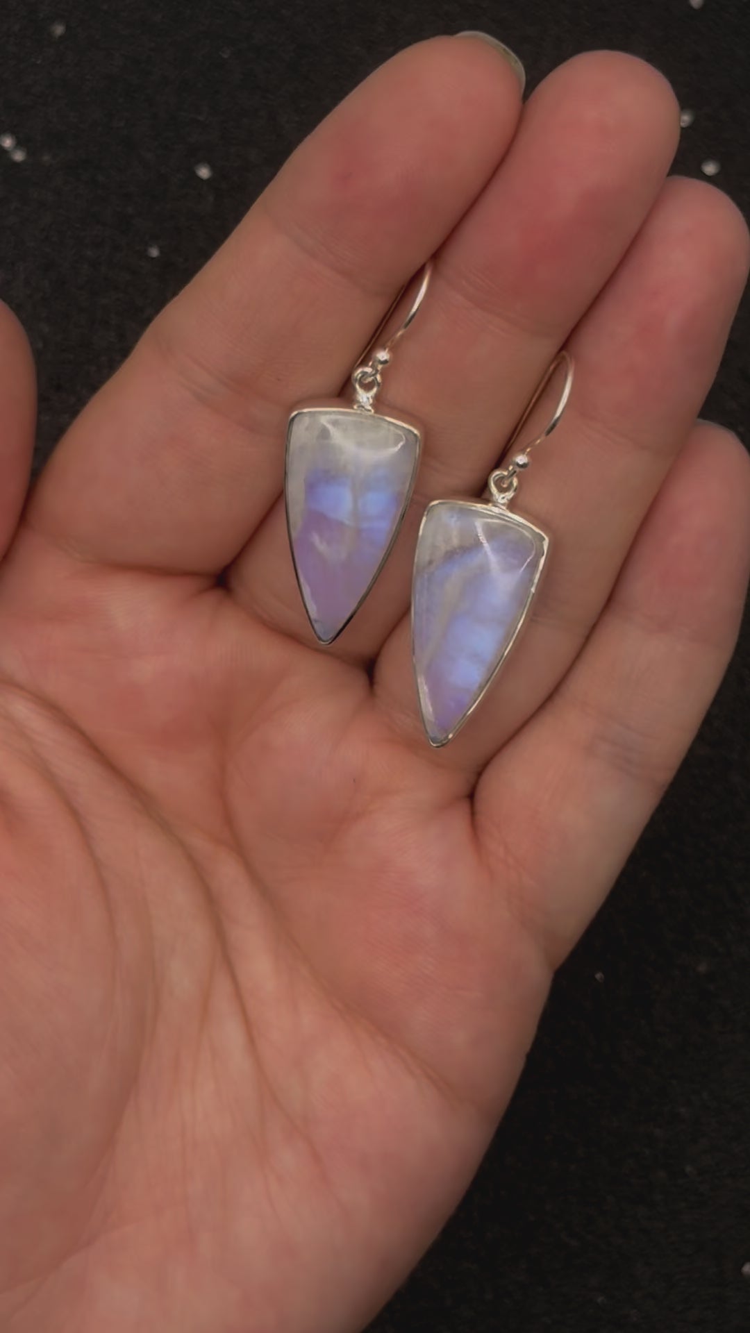 •RAINBOW MOONSTONE FANG• silver dangle earrings