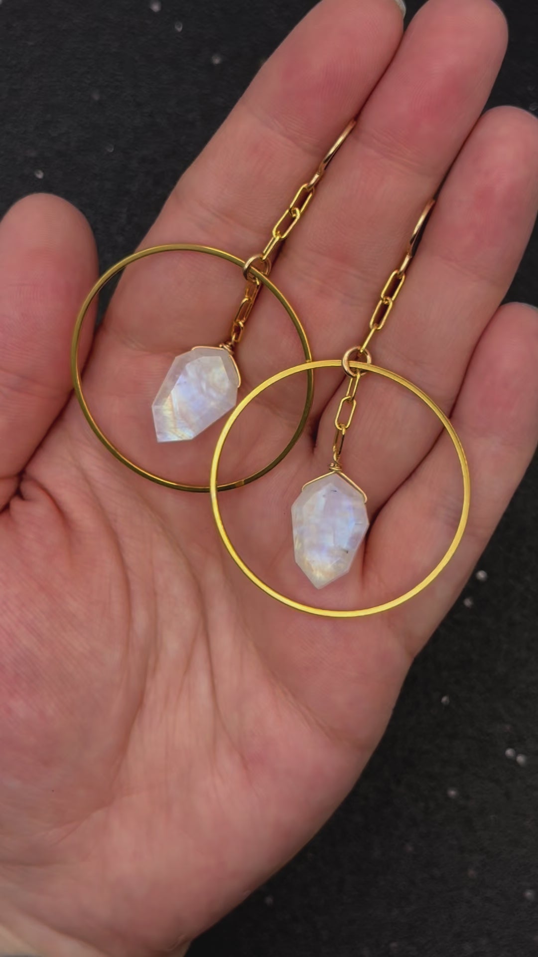 •ECLIPSE SWING• rainbow moonstone + gold dangle earrings