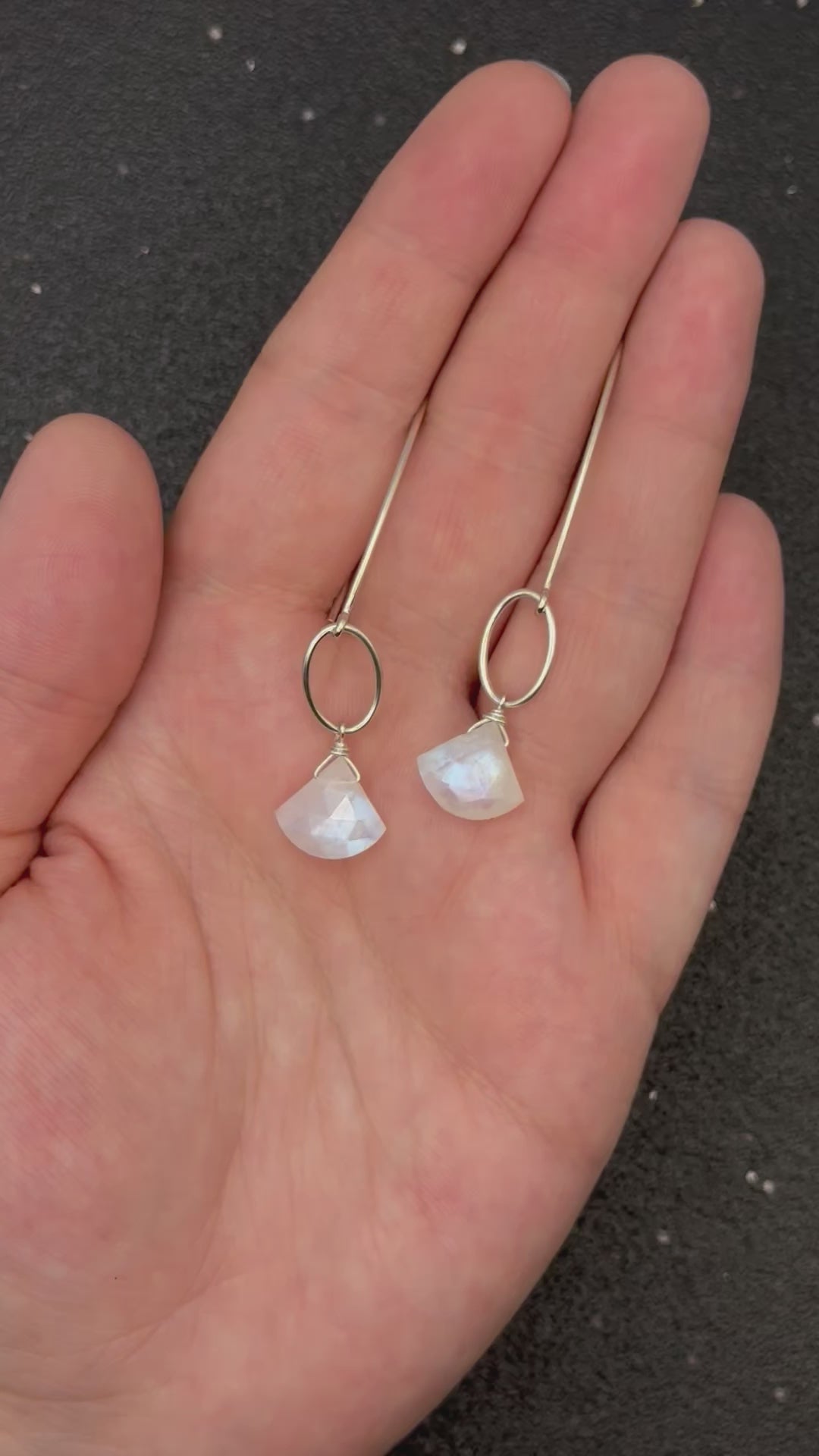 •IO - AXE• rainbow moonstone + silver dangle earrings