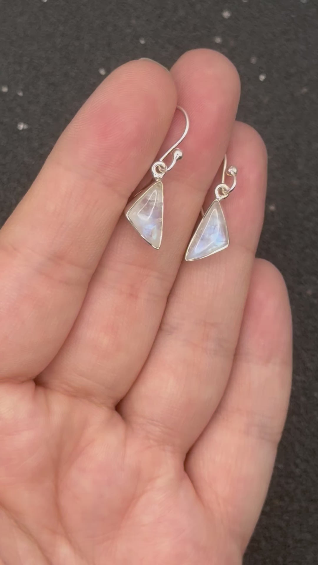 •RAINBOW MOONSTONE SOFT TRIANGLE• silver dangle earrings