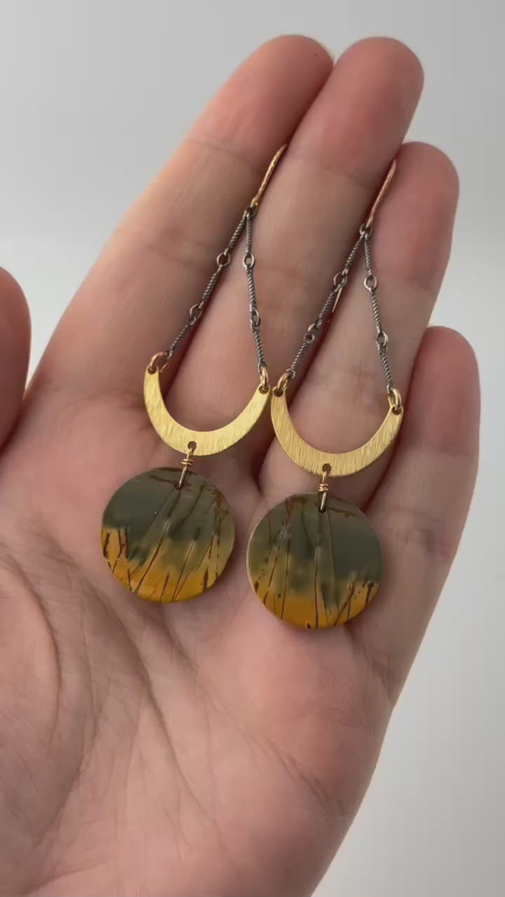 •MOON SWING• red creek jasper + mixed metal dangle earrings