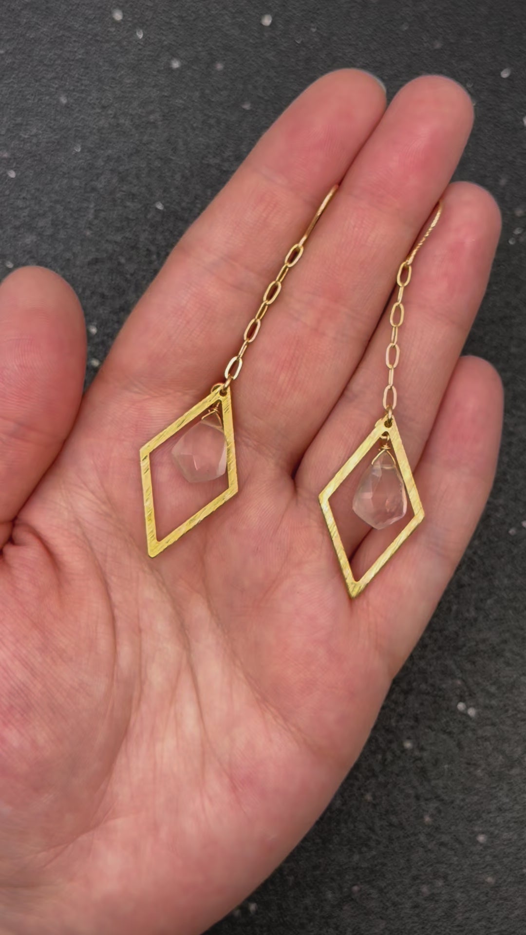 •DIAMOND DANCER• rose quartz + gold dangle earrings