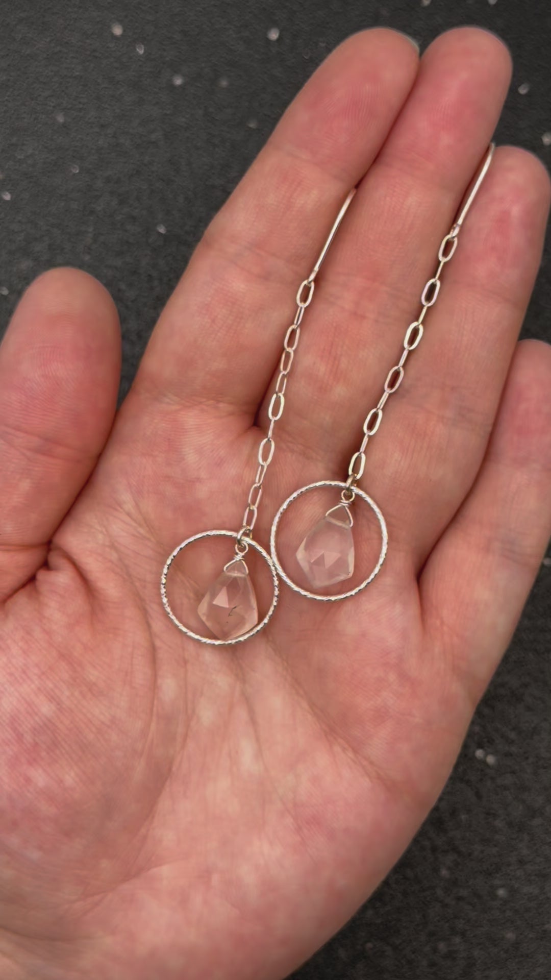 •ECLIPSE SWING• rose quartz + silver dangle earrings
