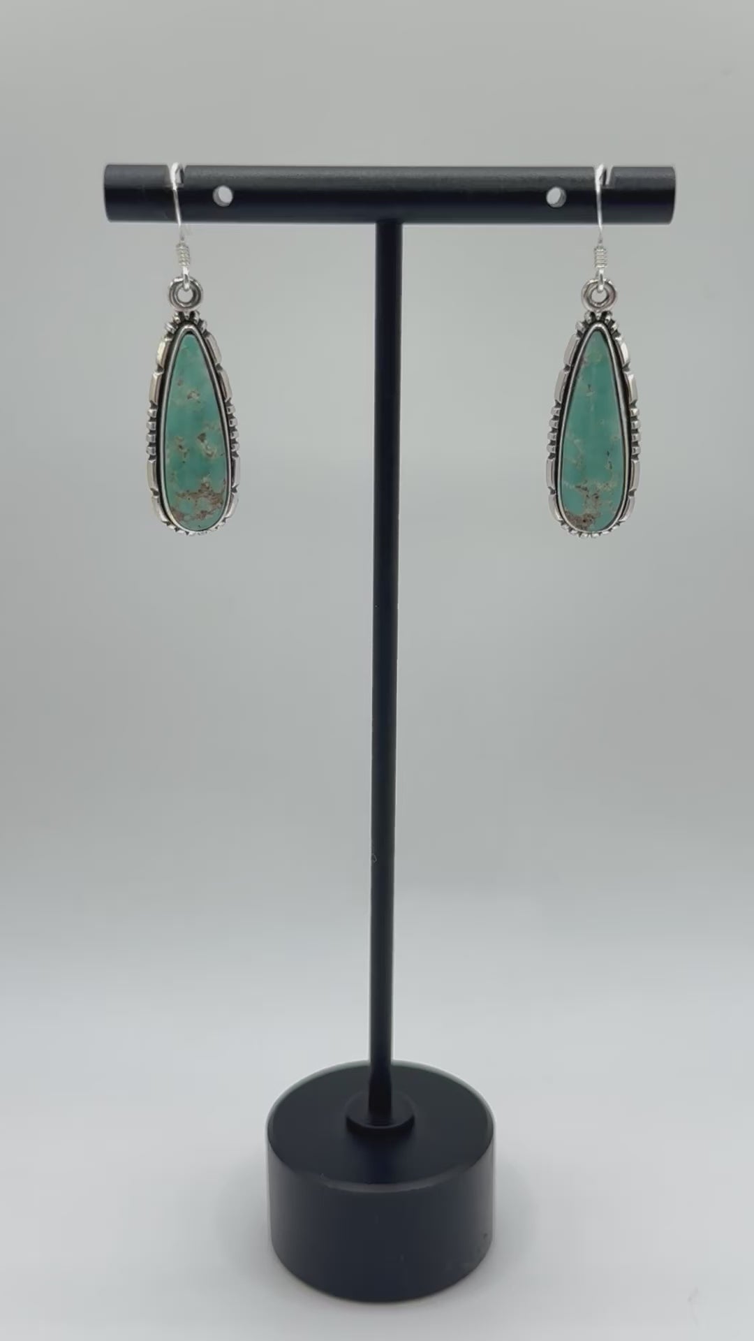 •TURQUOISE TEARDROP - 2• Navajo silver dangle earrings
